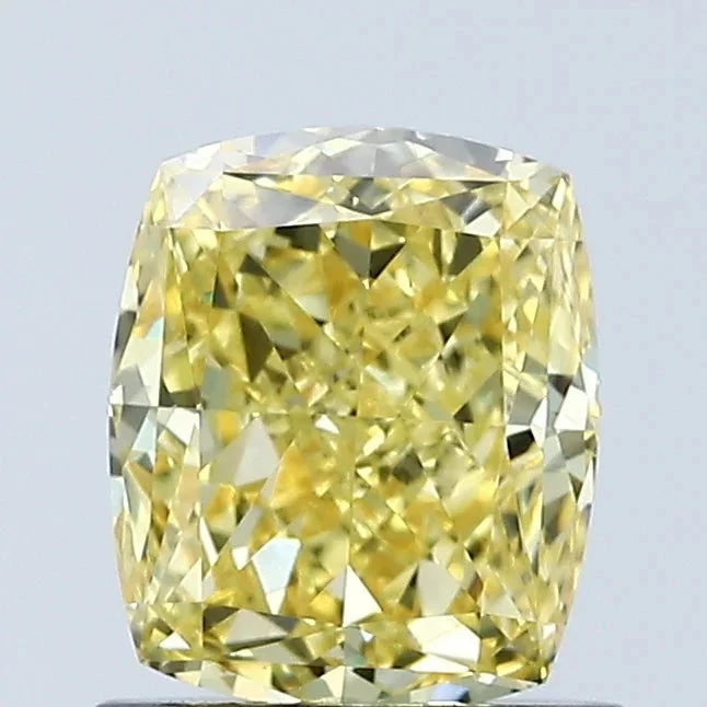 Sku: 24-678508558Shape: CushionColor: Fancy Vivid YellowClarity: VS1Carat Wgt: 1.04Certifying Lab: IGICut Grade: EXCELLENTPolish: ExcellentSymmetry: ExcellentFluor: NCertificate # 678508558Length: 6.44Width: 5.37Depth: 3.45Depth %: 64.2Table %: 62Measurement: 6.44 x 5.37 x 3.45