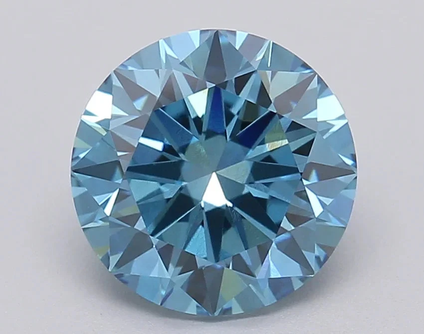 Sku: 24-613349401Shape: RoundColor: Fancy Vivid BlueClarity: VVS2Carat Wgt: 2.02Certifying Lab: IGICut Grade: EXCELLENTPolish: ExcellentSymmetry: ExcellentFluor: NCertificate # 613349401Length: 8.12Width: 8.05Depth: 4.94Depth %: 61.3Table %: 62Measurement: 8.05 – 8.12 x 4.94