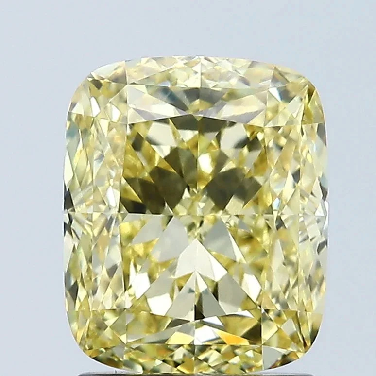 Sku: 24-678509048Shape: CushionColor: Fancy Vivid YellowClarity: VVS2Carat Wgt: 2.03Certifying Lab: IGICut Grade: EXCELLENTPolish: ExcellentSymmetry: ExcellentFluor: NCertificate # 678509048Length: 7.9Width: 6.51Depth: 4.23Depth %: 65Table %: 58Measurement: 7.90 x 6.51 x 4.23