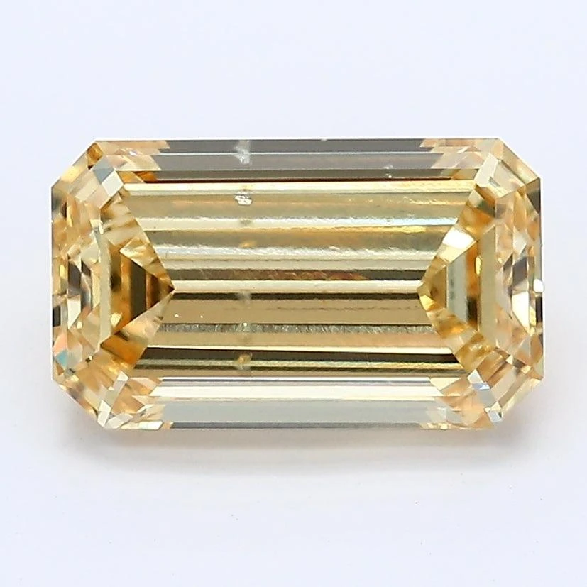 Sku: 19-LG12319803Shape: EmeraldColor: Fancy Intense YellowClarity: SI1Carat Wgt: 2.09Certifying Lab: IGICut Grade: GoodPolish: GoodSymmetry: GoodFluor: SLCertificate # LG12319803Length: 9.66Width: 5.7Depth: 3.63Depth %: 63.7Table %: 64.5Measurement: 9.66×5.7×3.63