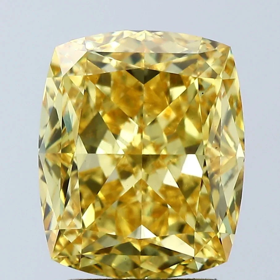 Sku: 24-675592387Shape: CushionColor: Fancy Vivid YellowClarity: VS1Carat Wgt: 4.03Certifying Lab: IGICut Grade: EXCELLENTPolish: ExcellentSymmetry: ExcellentFluor: NCertificate # 675592387Length: 9.62Width: 7.96Depth: 5.49Depth %: 69Table %: 62Measurement: 9.62 x 7.96 x 5.49
