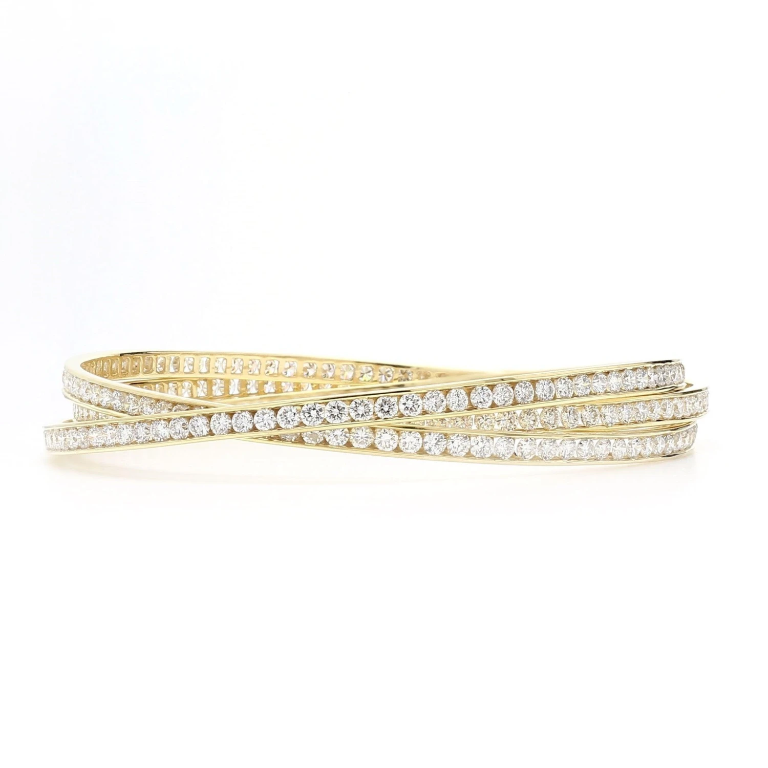 Basic yet brilliant, this fashion bangle bracelet elevates any attire from casual to business to formal. Each bangle is crafted in 14K gold and intertwined into one piece that catches and reflects the light with every turn of the wrist.