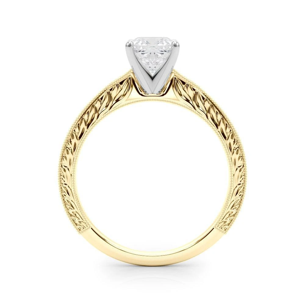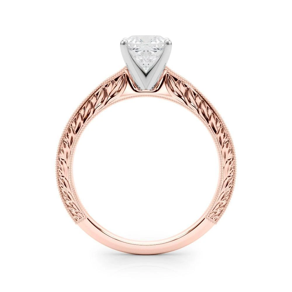 The Addison Solitaire Setting is a timeless engagement ring crafted with vintage etch work and mil-grain for a classic and elegant look. Its intricate design guarantees a unique and memorable ring that symbolizes your lasting love.