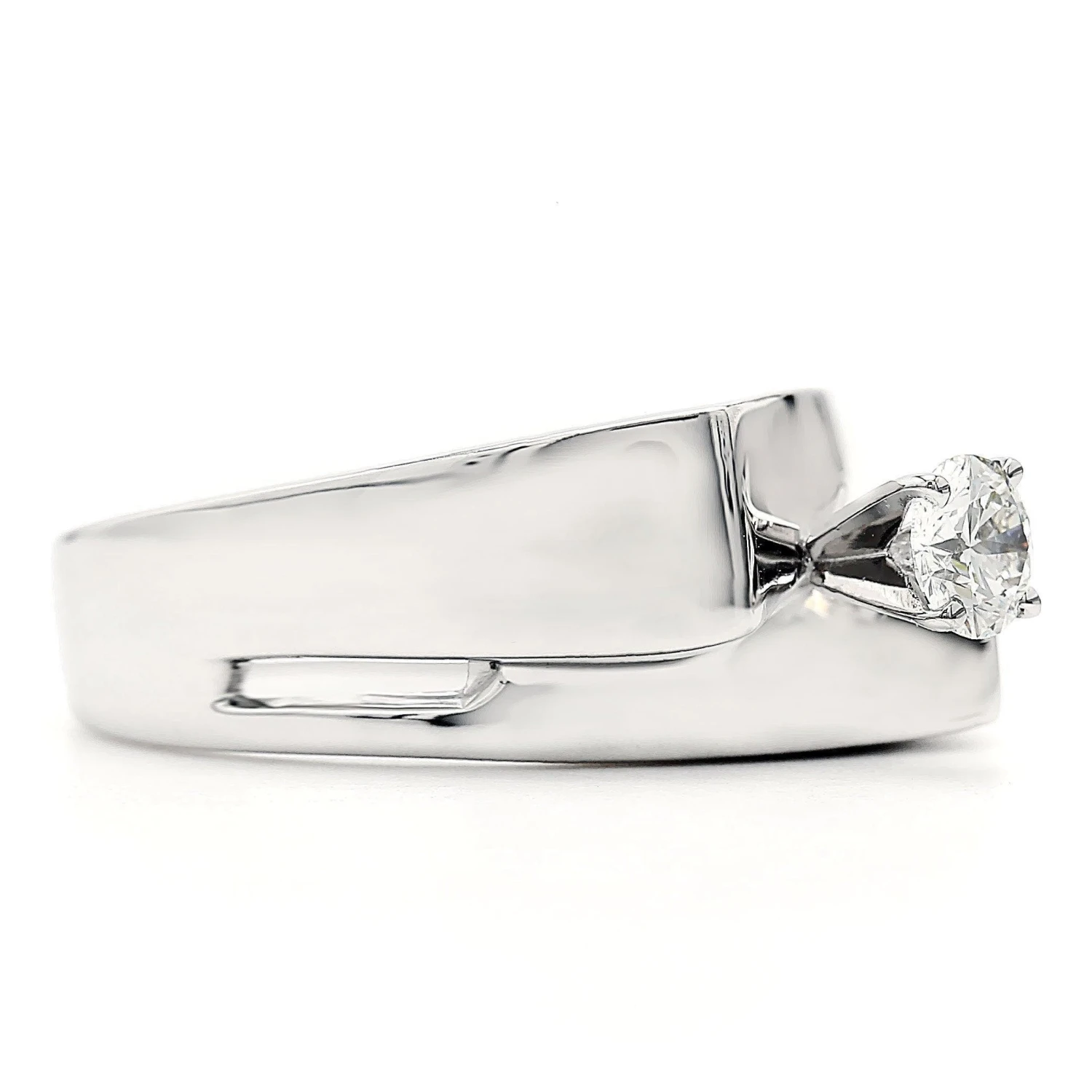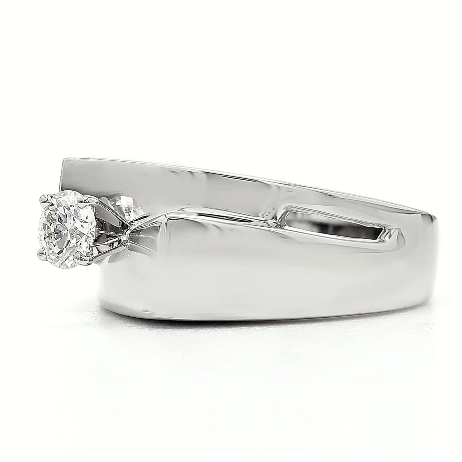 With vintage-inspired, this beautiful solitaire will complement her wardrobe for years to come. Fashioned in 14K white gold, with high polished art deco arches showcases an 1/3 carat lab created diamond with a color ranking of I-J with VS clarity, this ring is sure to be the topic of conversation.
