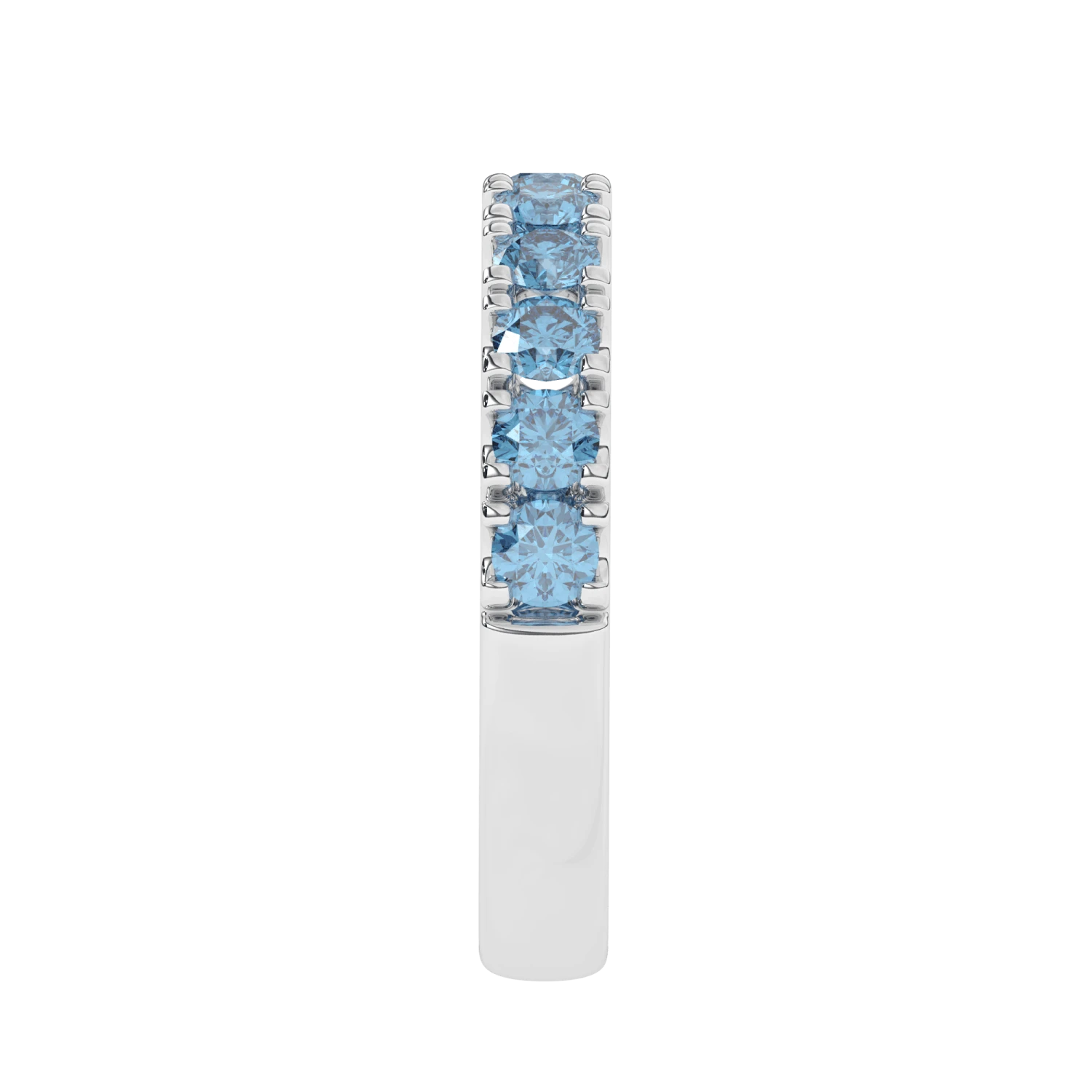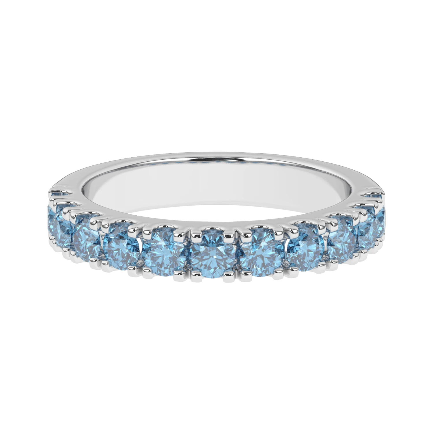 Simply sophisticated, this blue lab grown diamond band is a stack-able style to wear with anything. Fashioned in 14K gold, this slim design features blue lab created diamonds. A lovely look, this ring is buffed to a brilliant luster.