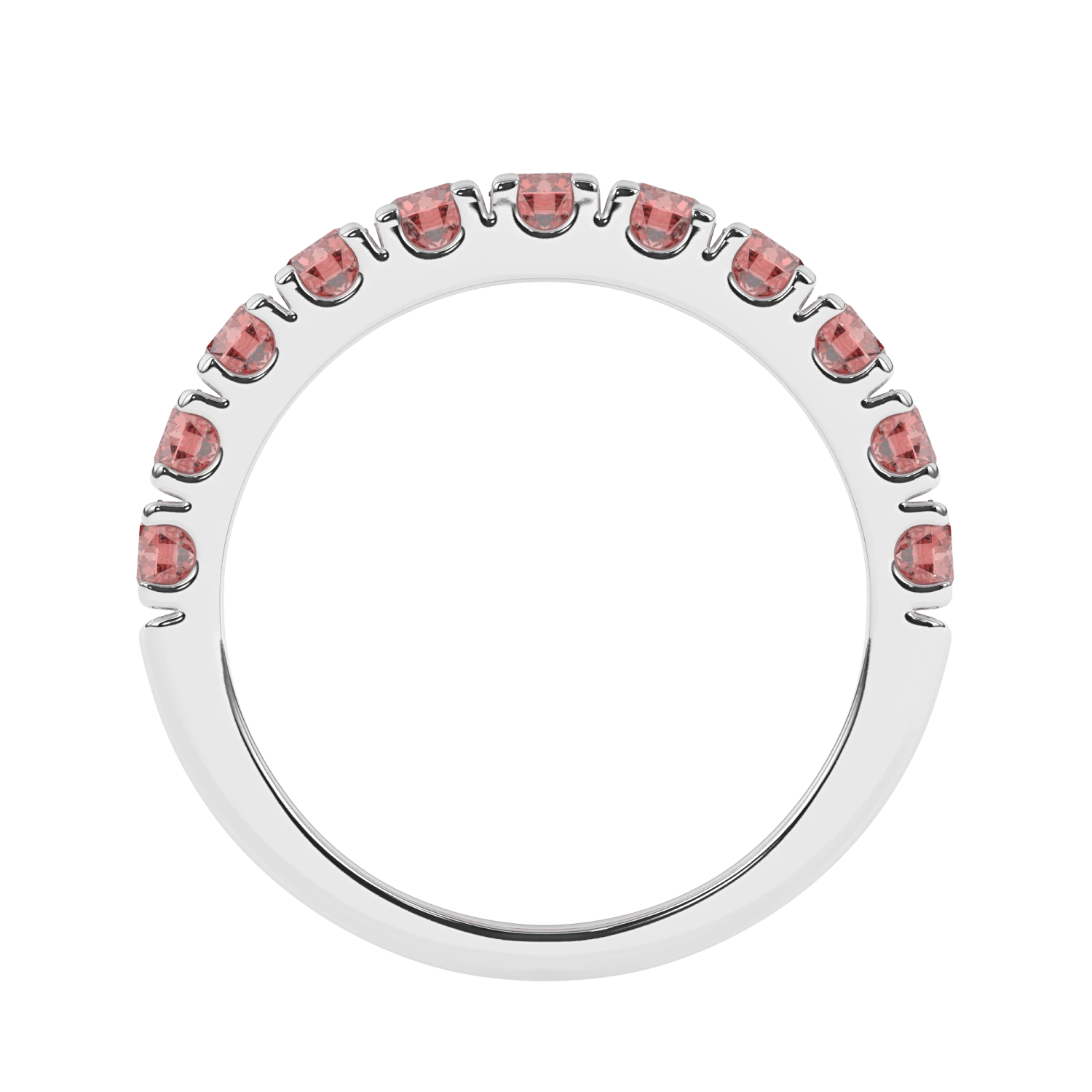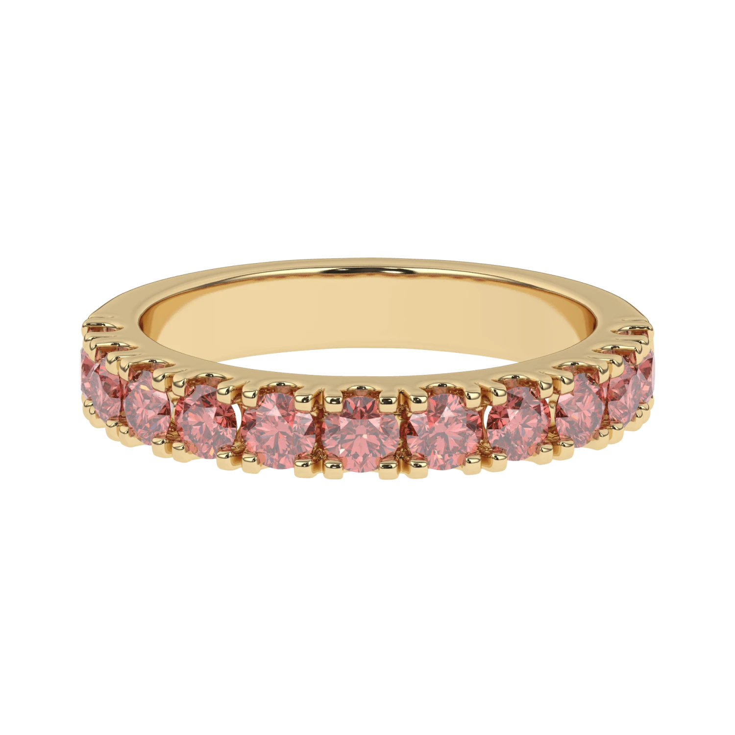 Simply sophisticated, this pink lab grown diamond band is a stack-able style to wear with anything. Fashioned in 14K gold, this slim design features pink lab diamonds. A lovely look, this ring is buffed to a brilliant shine.Â