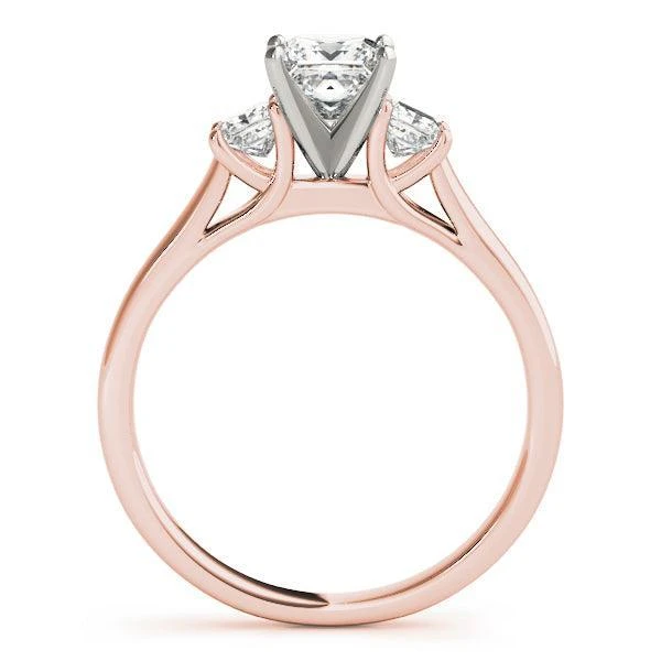 This timeless 3 stone setting features two side lab grown princess cut diamonds set in fine gold or platinum. Best for a smaller center loose diamond and great for any shape of diamond too. The perfect ring to symbolize your past, present, and future, the Belle 3 Stone Setting is a beautiful and meaningful way to express your commitment.