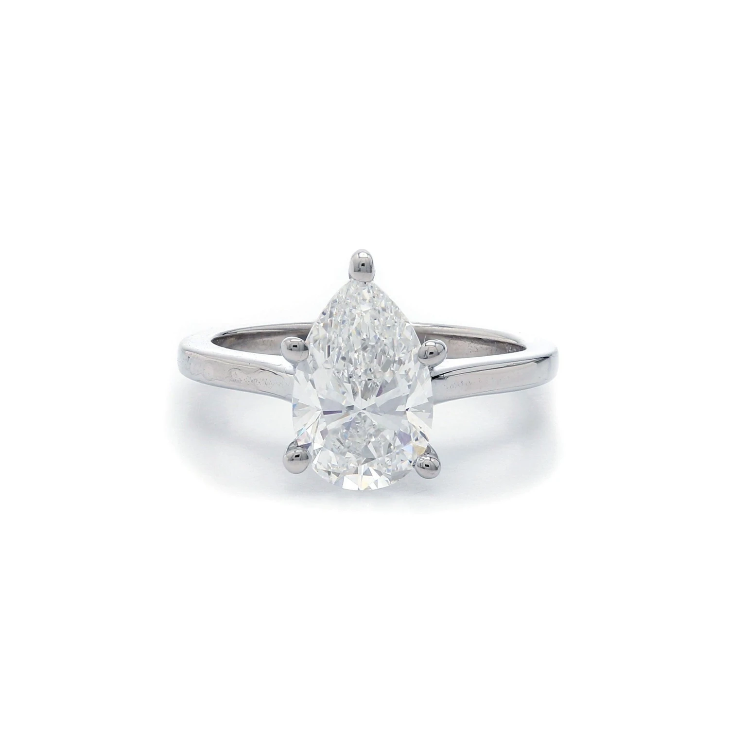 Fashioned in precious 14K white gold, this impressive design highlights a 2.25 carat lab grown diamond. Holding the F-VS1 diamond is a five-prong simple setting to complete this magical look. Spectacular style and a brilliant luster, this engagement ring is fit for a princess. Certificate # 389990265