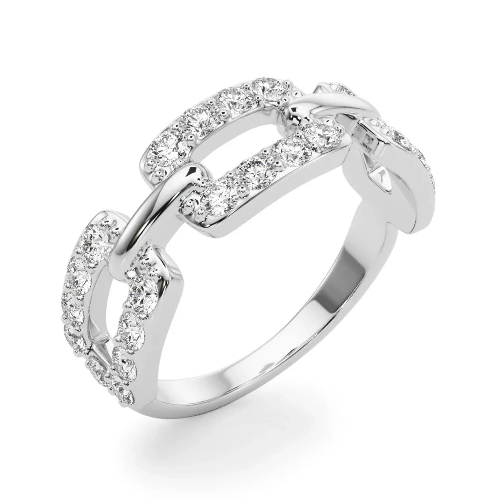 Make a bold fashion statement with our Buckle Link Diamond Band, featuring an impressive 3/4 carat total weight of lab grown diamonds. These brilliant stones outline distinctive buckle designs ingeniously linked together, creating a contemporary yet timeless piece. The fashionable band combines luxury with sustainability, offering exceptional sparkle and ethical peace of mind. Elevate your jewelry collection with this conversation-starting accessory that transitions effortlessly from day to evening wear.