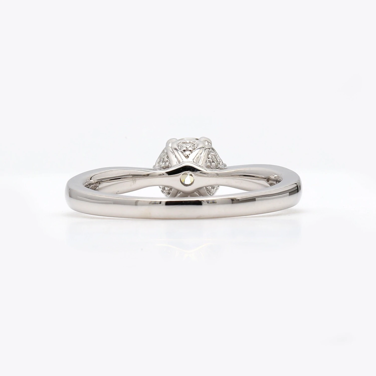 The vintage inspired design of this certified lab grown diamond engagement ring is breathtaking. Crafted in 14K white gold, this dazzling choice showcases a sparkling 0.87 carat round J VS lab grown diamond nestled on top of a crown of shimmering round diamonds. Additional lab created diamonds line the intricate shank for a total of 1/8 carat accents.
