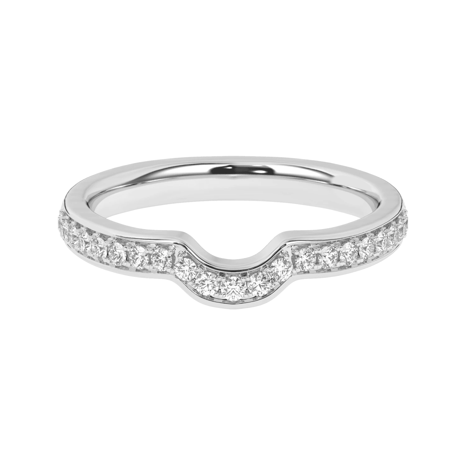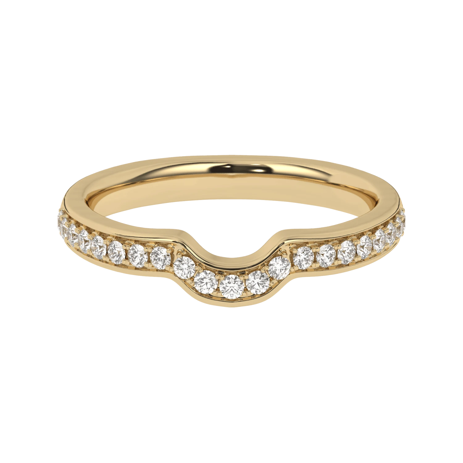 Fashioned in precious gold, this impressive design matches the Celeste Setting. Curved to go around the crown design and adorned with F-G color and VS-SI clarity lab grown diamonds totaling 1/4 carats to complete this magical look. Spectacular vintage style and a brilliant buffed luster, this wedding band is fit for the set. If matching to make a bridal set, the bands diamond weight and curve adjusts accordingly.