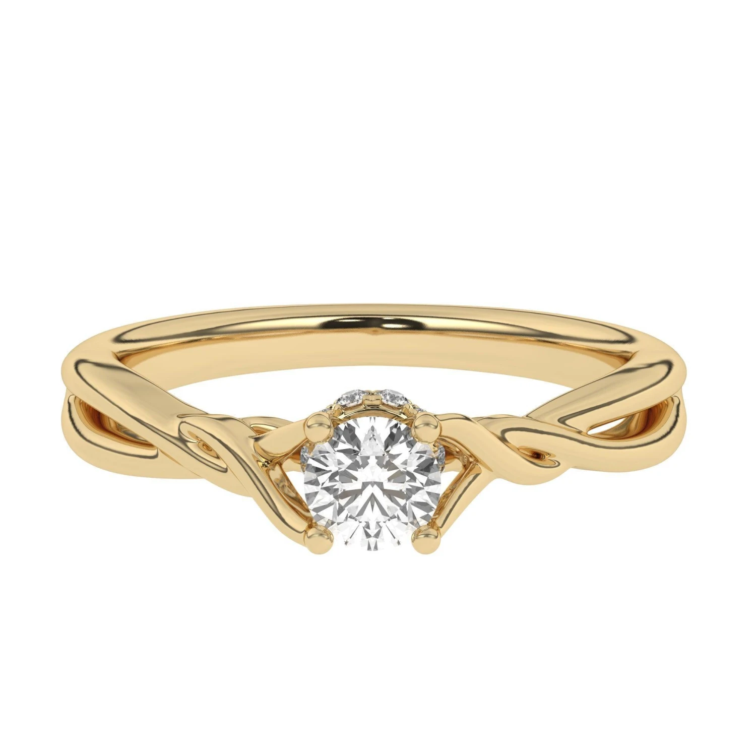 A stunning vintage style lab-grown diamond engagement setting. Crafted in platinum or gold, the center stone you choose will rise above hidden halo of lab created diamonds totaling 1/10 carats, eternity band circle underneath the center stone, while the etched work twist, high polished shank completes the look.