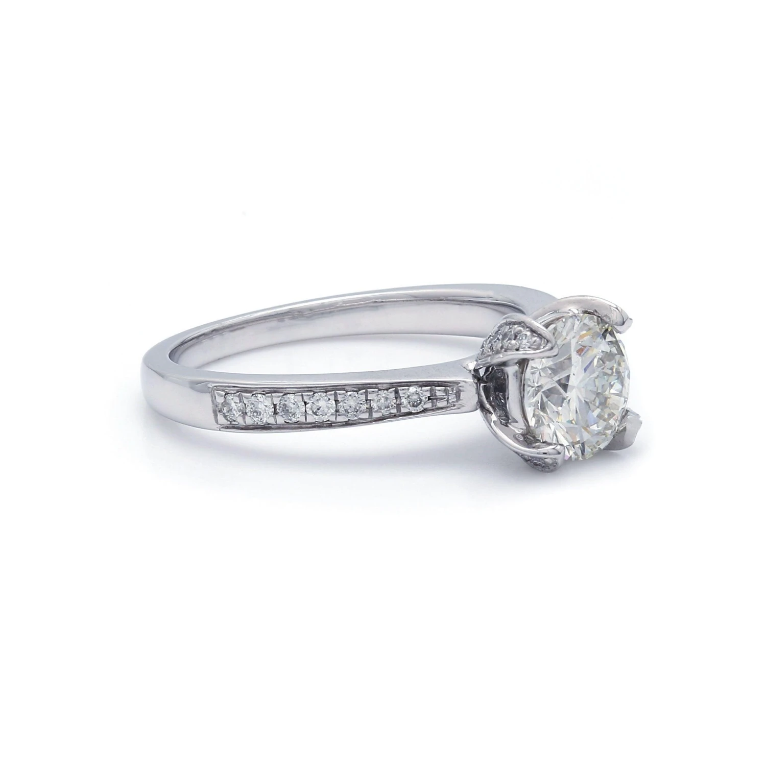 We offer a range of settings, usually in the shape for a round diamond. However, each setting is made for the loose diamond shape you choose. Helpful hints for picking a diamond shape: