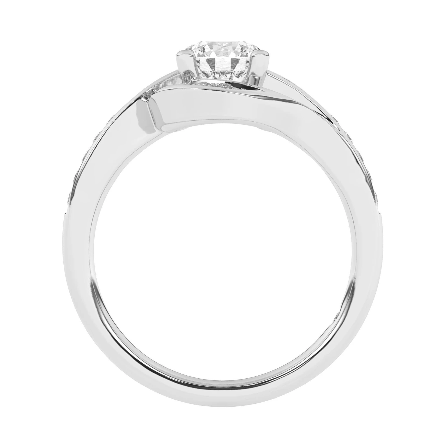A round lab diamond of your choosing is at the center of this engagement ring. A swirl of lab diamonds surround and line the center stone adding additional sparkle to this simple design. The ring has 1/5 carat total weight of lab created diamonds set in a fine gold or platinum ring.Â