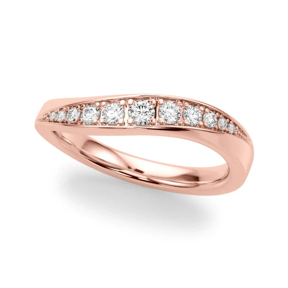 Embrace modern elegance with this sophisticated curve band showcasing 1/4 carat total weight of premium lab grown diamonds. The contemporary curved silhouette follows the natural contours of your finger, creating a graceful, flowing aesthetic that stands apart from traditional designs. Each ethically sourced diamond is precisely set to maximize brilliance, offering exceptional sparkle with environmental consciousness. A refined statement piece that effortlessly transitions from day to evening wear.