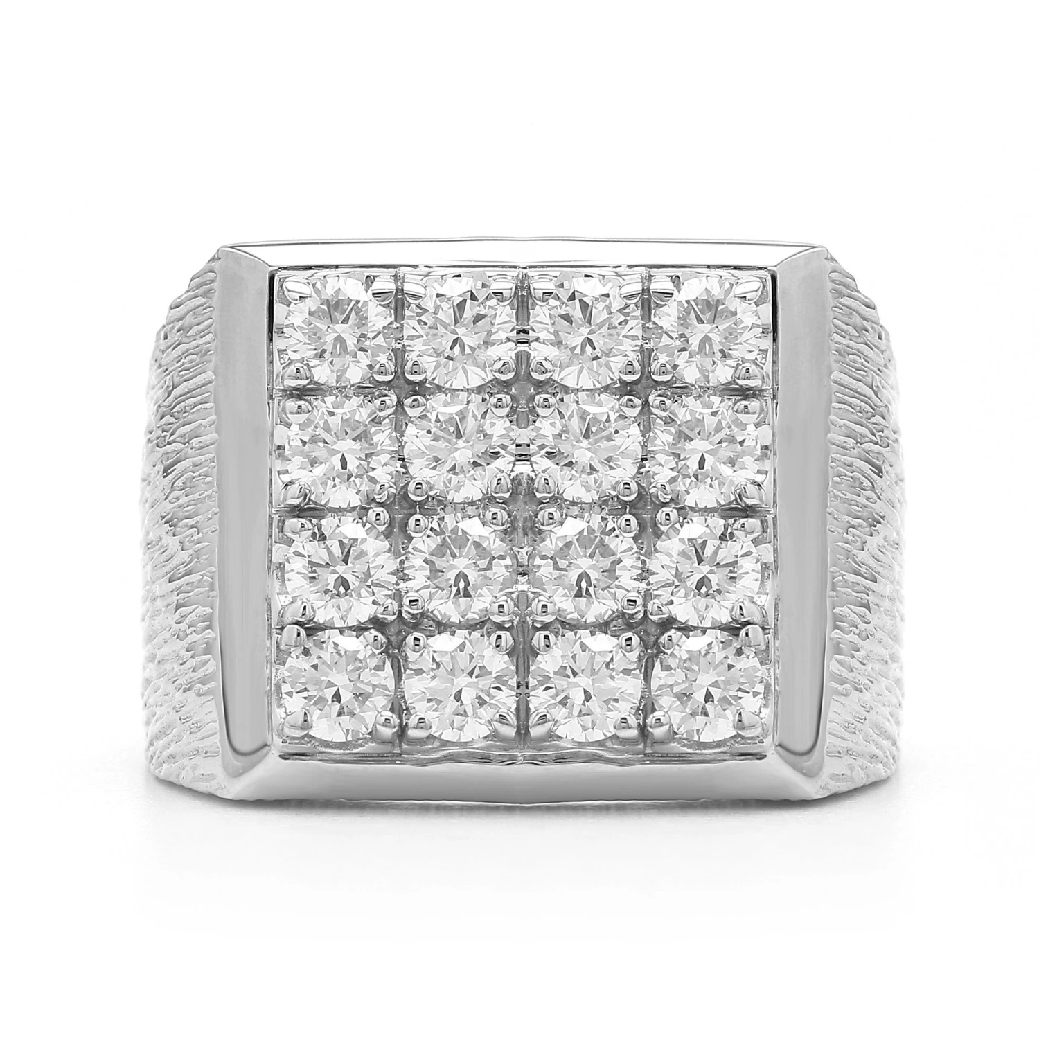 A sophisticated and fashionable ring for just his distinguished style. Created in 14K gold, the eye is drawn to the rectangular center frame set with row after row of shimmering I-J VS-SI lab grown diamonds that equal 2.00 carat total weight. While grooved detailing grace the ring’s wide shank for a bold look he’ll appreciate.