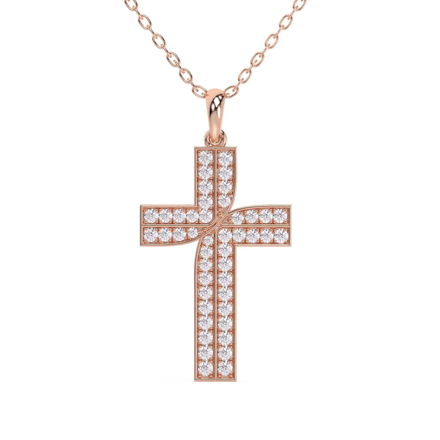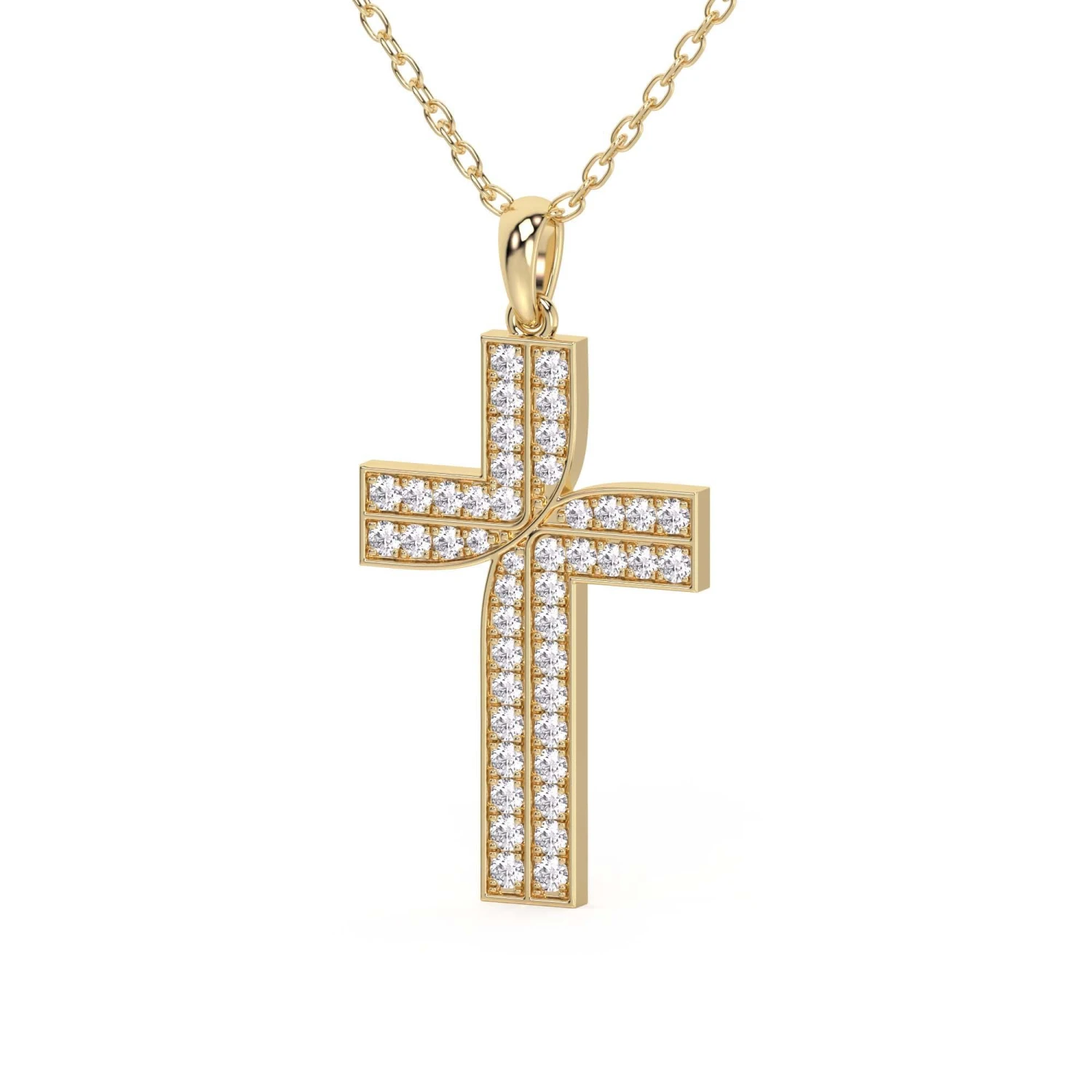 This stunningly crafted cross pendant features 1/2Ctw of sparkling lab grown diamonds, laid out in two graceful rows, and set in a shining 14k gold setting. Perfect for adding a hint of sparkle to any ensemble!
