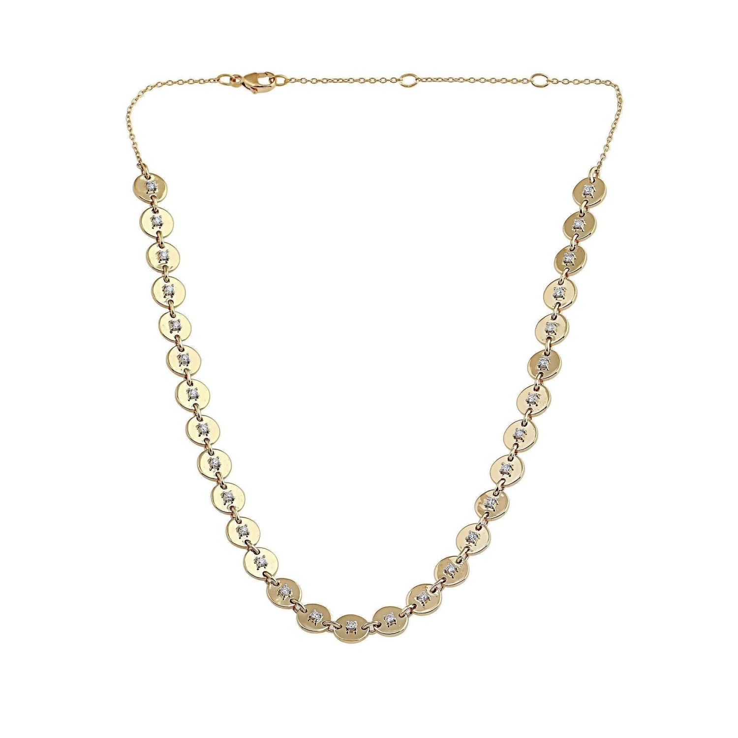 Choose between a sterling silver or gold over silver choker that boasts a total diamond carat weight of 2/3 with lab grown G-H/VS-SI diamonds in solitaire disc stations. The 16″ adjustable chain allows for a perfect fit. Elevate any outfit with this elegant and sustainable diamond choker.