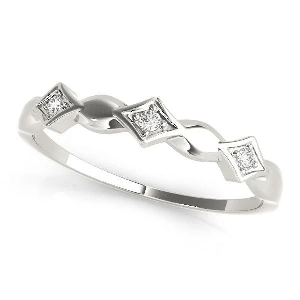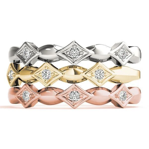 Simple and sweet Emily Band – a 3-stone ring that’s perfect for everyday wear. It’s great for stacking or for sharing with BFFs! Three metal colors available, why not match and start a trend to express your own style. 3 lab grown diamonds equaling 1/20 carats in total weight and a high polished finish to add shine.