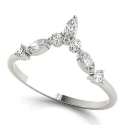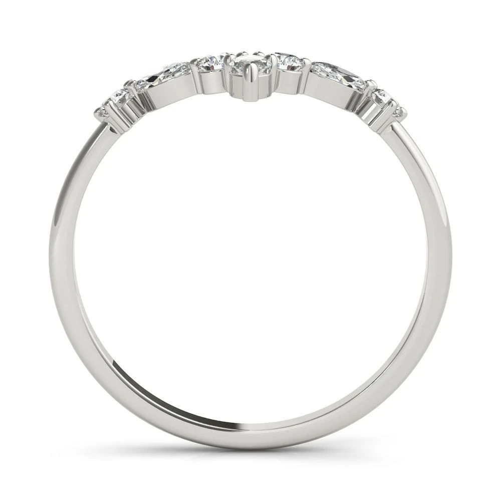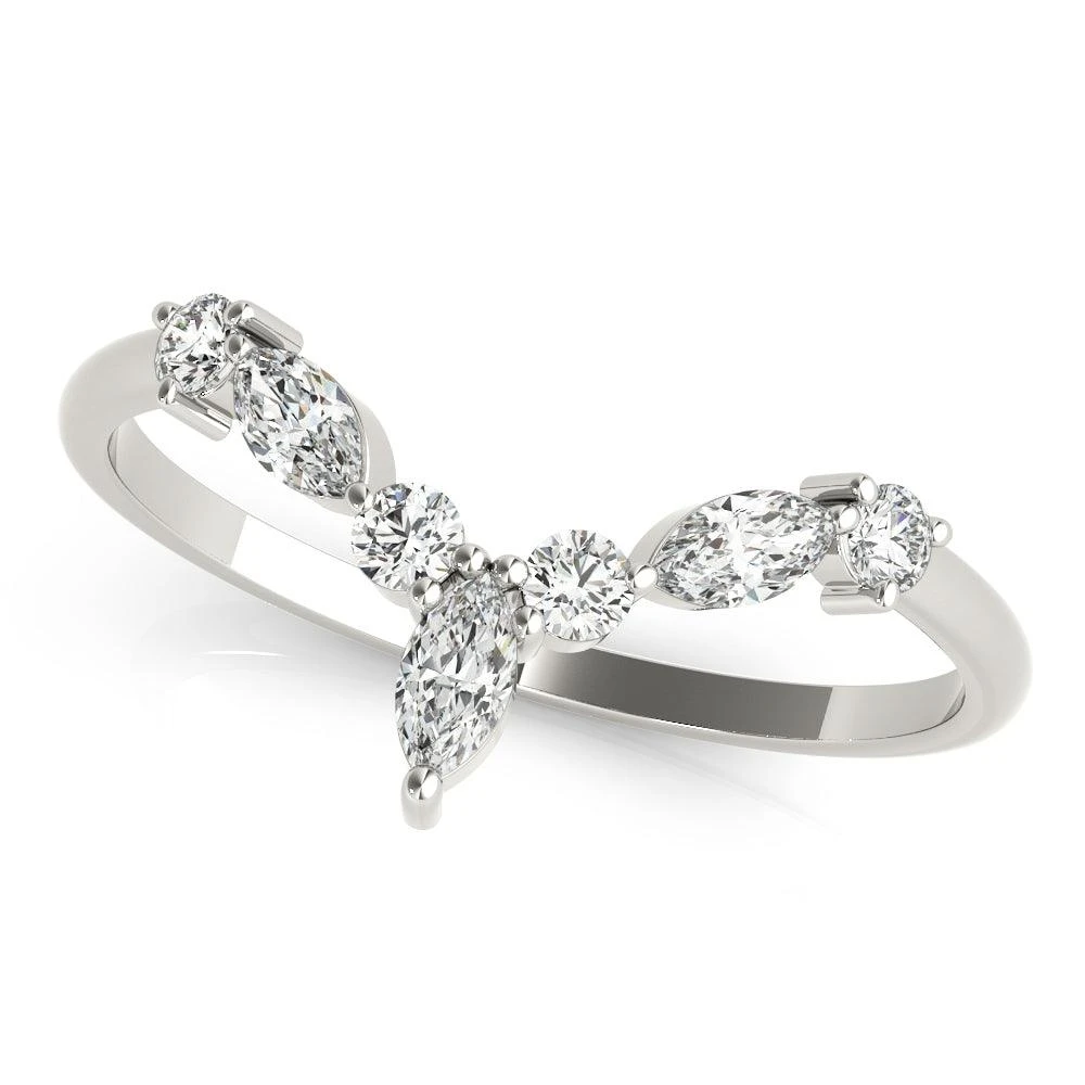Introducing the Empress Chevron Band, an exquisite piece featuring breathtaking marquise and round lab diamonds totaling 1/3 carats. This unique band is sure to elevate any look with its elegant and one of a kind style. Add a touch of luxury to your collection with the Empress Chevron Band.