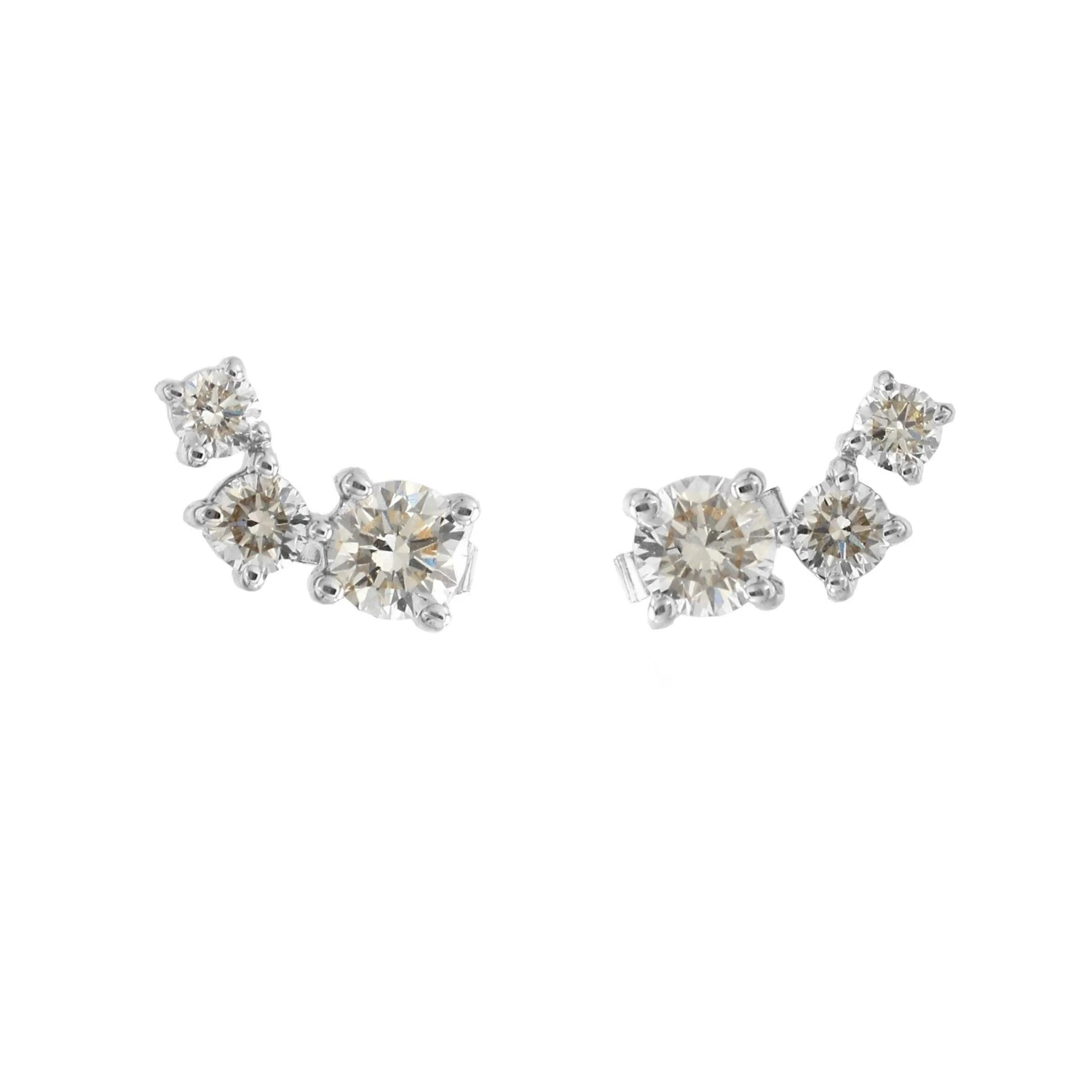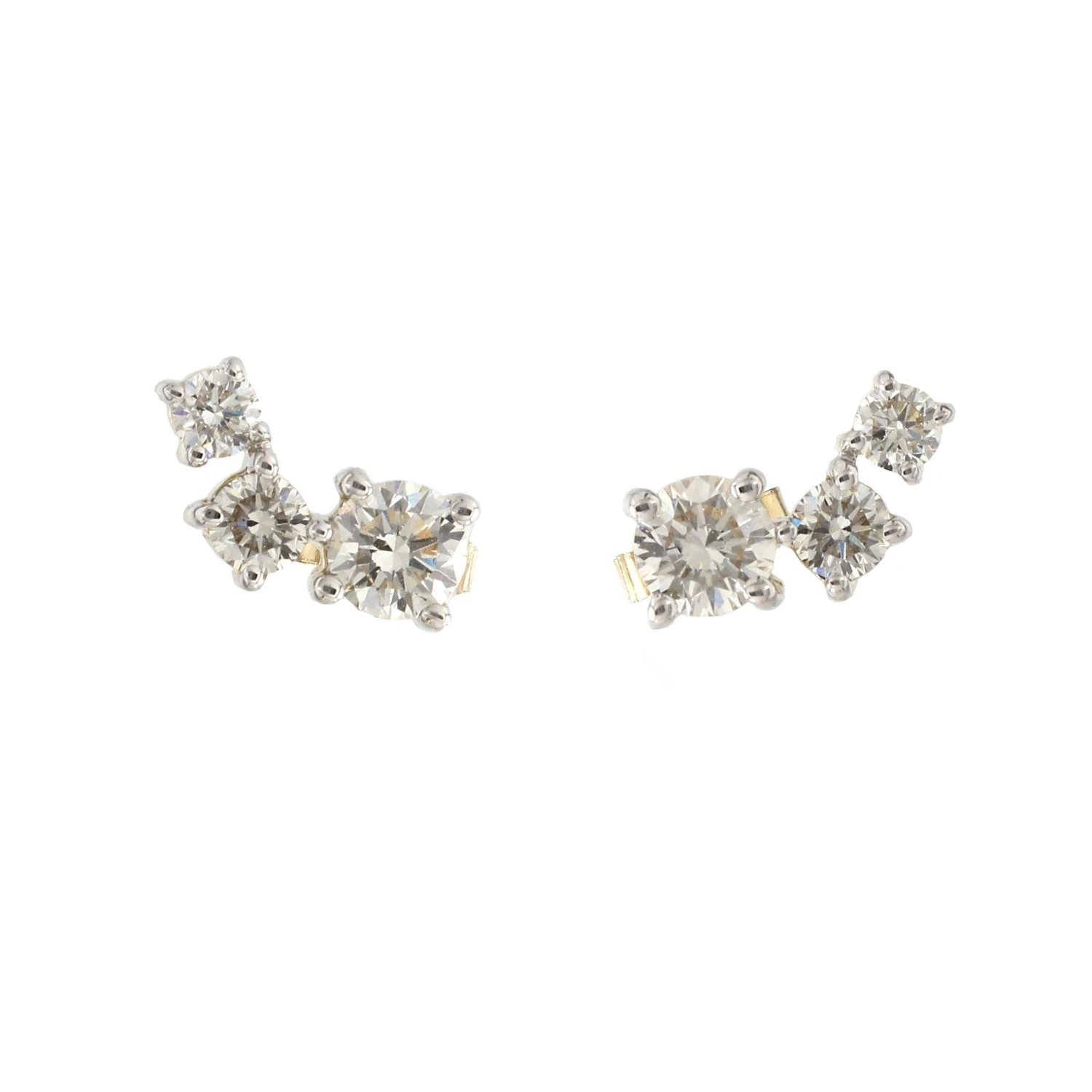 Add dimension to your outfit with the sparkle of these petite journey style lab grown diamond earrings. Crafted in 14K yellow or white gold, each earring is cascading from a large center to two smaller I-J, VS-SI lab grown brilliant round diamonds. Radiant with 1 1/4 carat total weight of lab diamonds and a bright polished shine, these post earrings secure comfortably with friction backs. Secure them in different directions for the look you want.