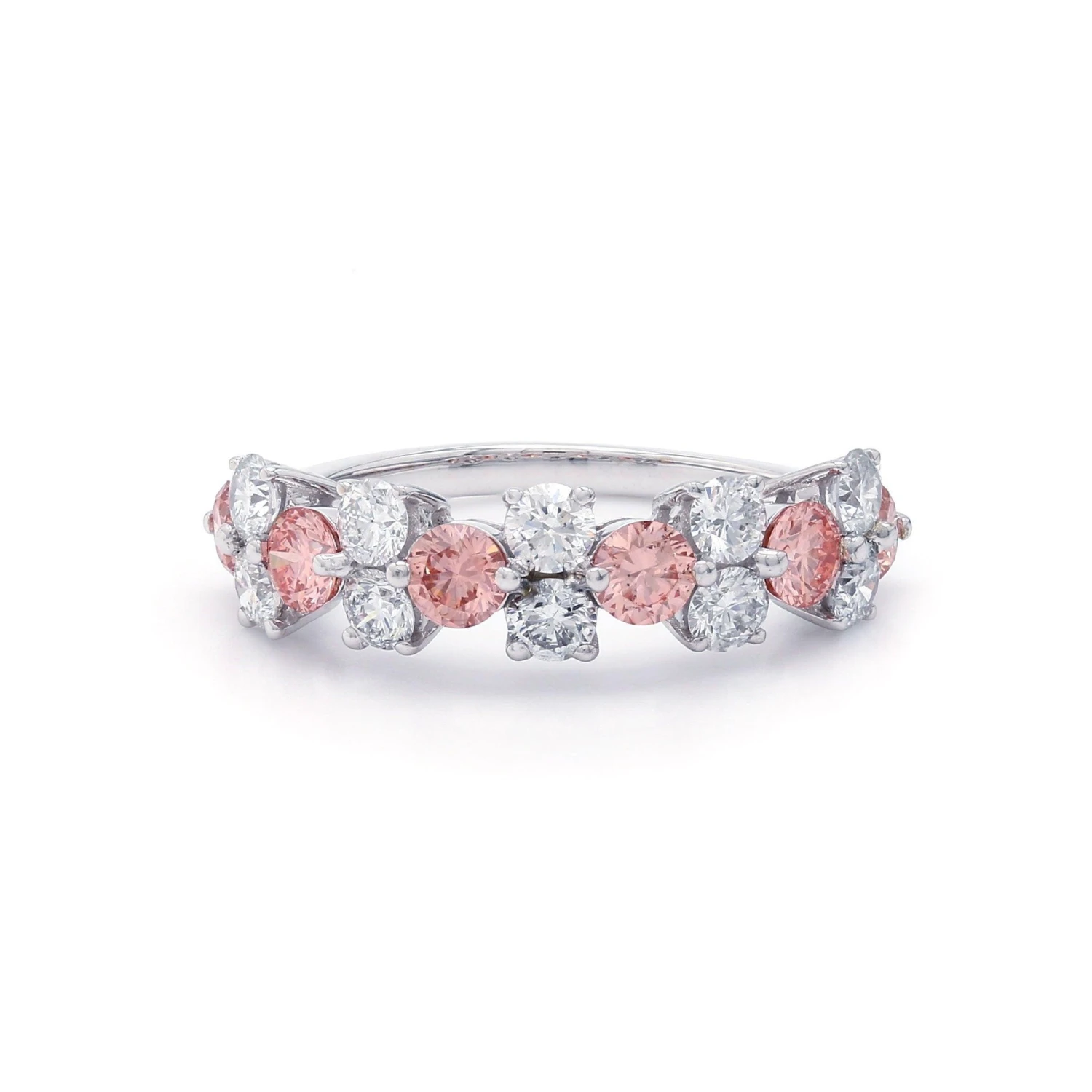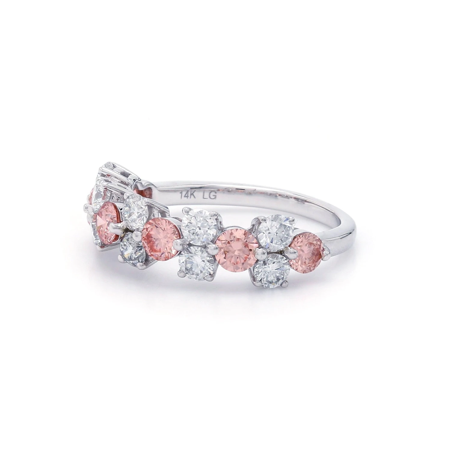 This chic choice makes a grand entrance with a magnificent 2.00 carat total weight of lab-grown diamonds in 14K white gold. A alternating look that features sparkling white lab created diamonds with a color ranking of I-J with VS-SI clarity and pink lab grown diamonds to create this exquisite band.