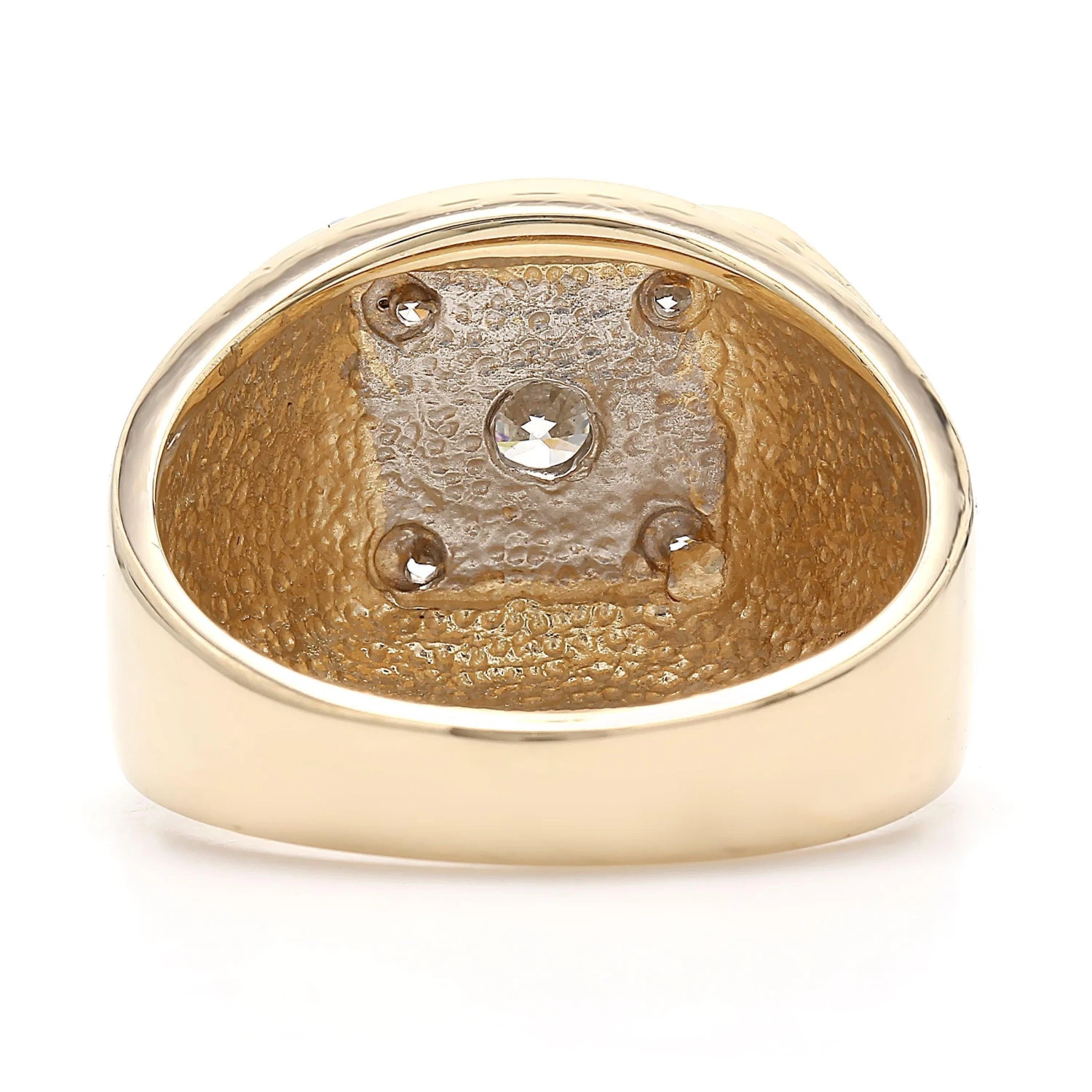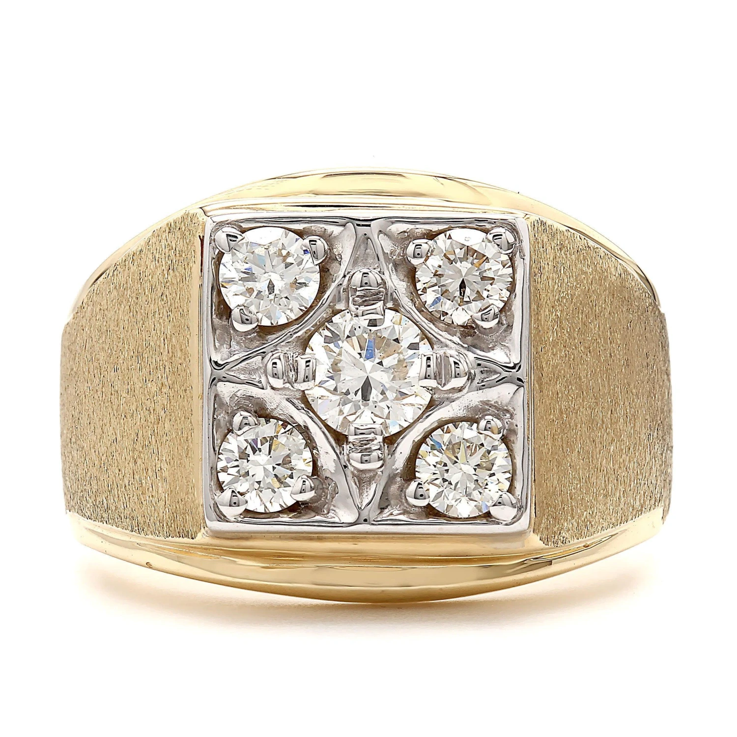 This distinguished lab grown diamond ring is just his style day or night. Expertly crafted in 14K gold, the eye is drawn to the 1.00 carat total weight square frame of shimmering round lab grown diamonds at the center of the ring. Edged in satin finish adds depth and dimension to the wide shank, completing the design. Each round lab grown diamond has a I-J color and VS-SI clarity ranking.