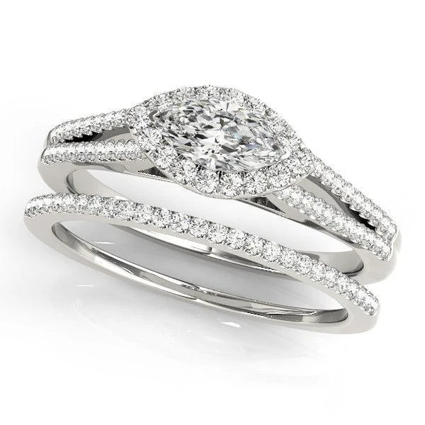Love dazzling elegance? Look no further: Holly East-West bridal set is the perfect way to showcase the lab grown marquise diamond of your dreams. Featuring 2/5Ctw lab grown diamond accents, a sophisticated east-west design, a dazzling halo setting, a stunning split shank, and a romantic matching wedding band, this set is sure to turn heads!