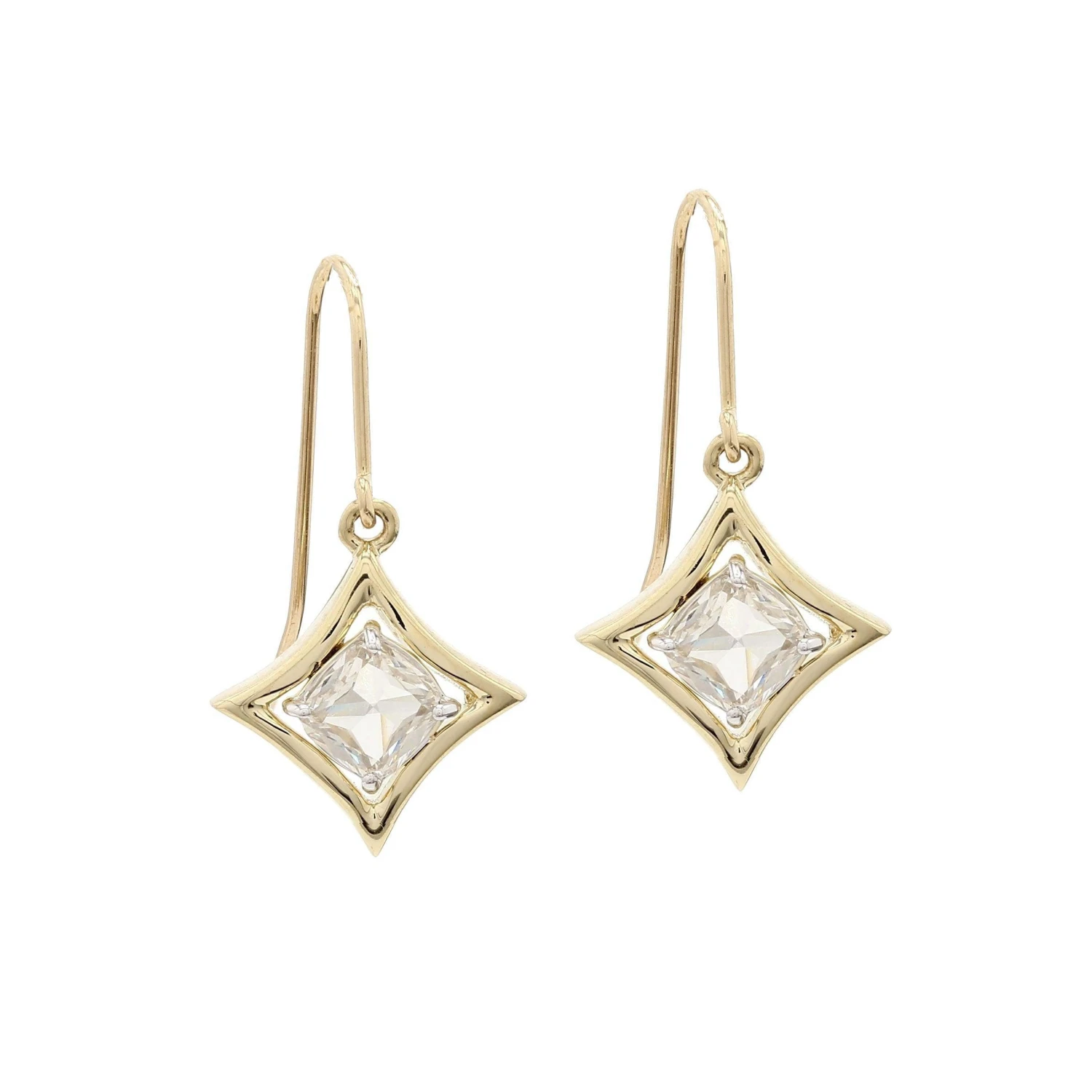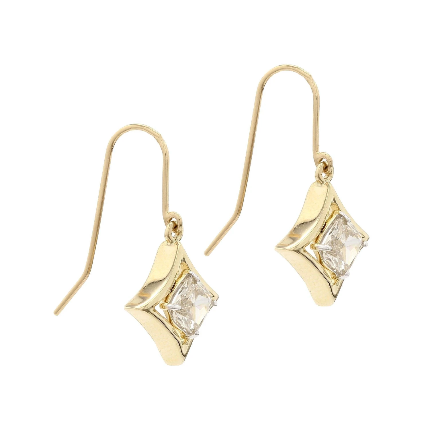 These antique inspired lab grown diamond earrings are a certain favorite. Created in 14K gold, the eye is drawn to the old fashion vintage rose cut diamond drops. The 1.00 carat total weight of lab created diamonds have an rose cut antique ambience and VS-SI clarity rank. A delightful look she is certain to adore, these earrings are polished to a brilliant shine and suspend freely from French wire backs.