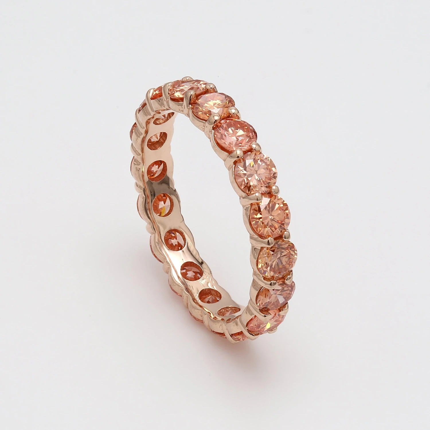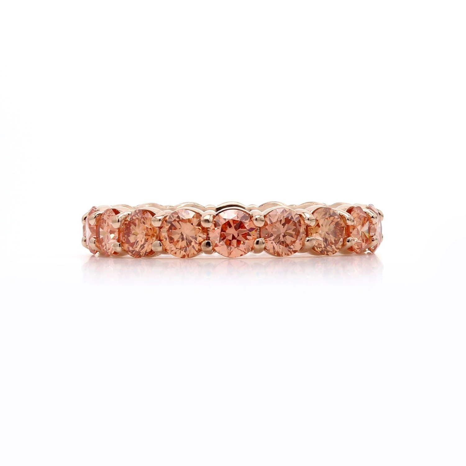 Celebrate your everlasting story with this lab-grown diamond eternity band. Exquisitely crafted in 14K yellow or white gold, this style is lined with glistening round orange colored lab created diamonds that completely encircle the slender band. Dazzling with a total of 2 1/2 carats of lab grown diamonds, buffed to a brilliant shine and certified.