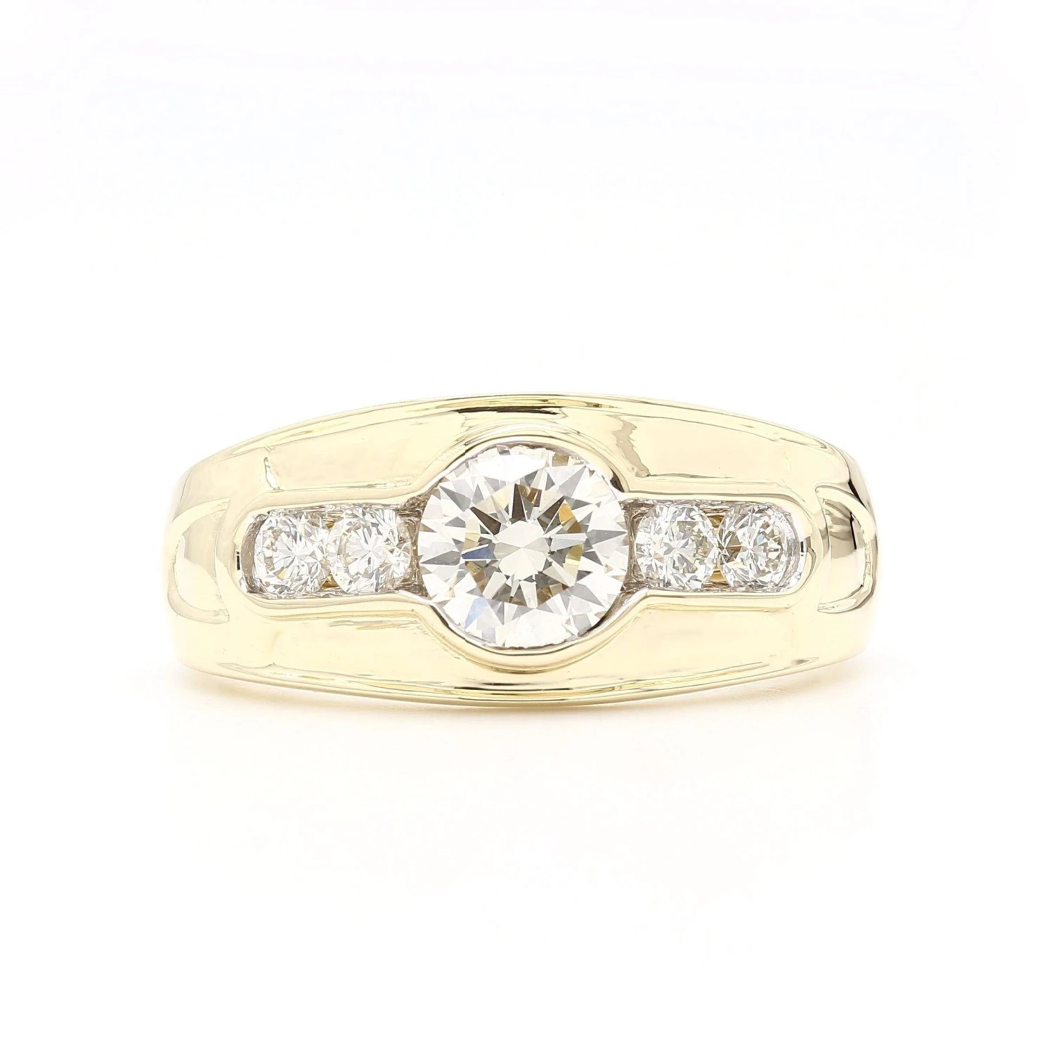 A classic men’s lab grown diamond ring makes a great choice. Crafted in 14K yellow or white gold, this stunning design features a a bold channel design that showcases a 1 3/4 carat total weight of round I-J, VS-SI lab grown diamonds.
