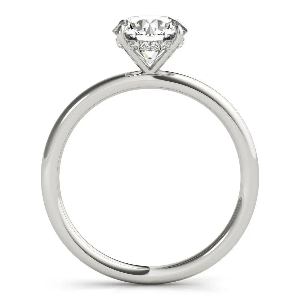 This Jasmine Hidden Halo Engagement Ring is crafted with a hidden halo design, featuring 1/20ctw of lab grown diamonds for added sparkle around your 1.0 lab grown diamond. Center diamond is ranking for grade D-E VS color/clarity; it’s your perfect proposal ring. The carefully placed diamonds add an elegant surprise to the center stone, creating a beautiful and trendy thin band look.