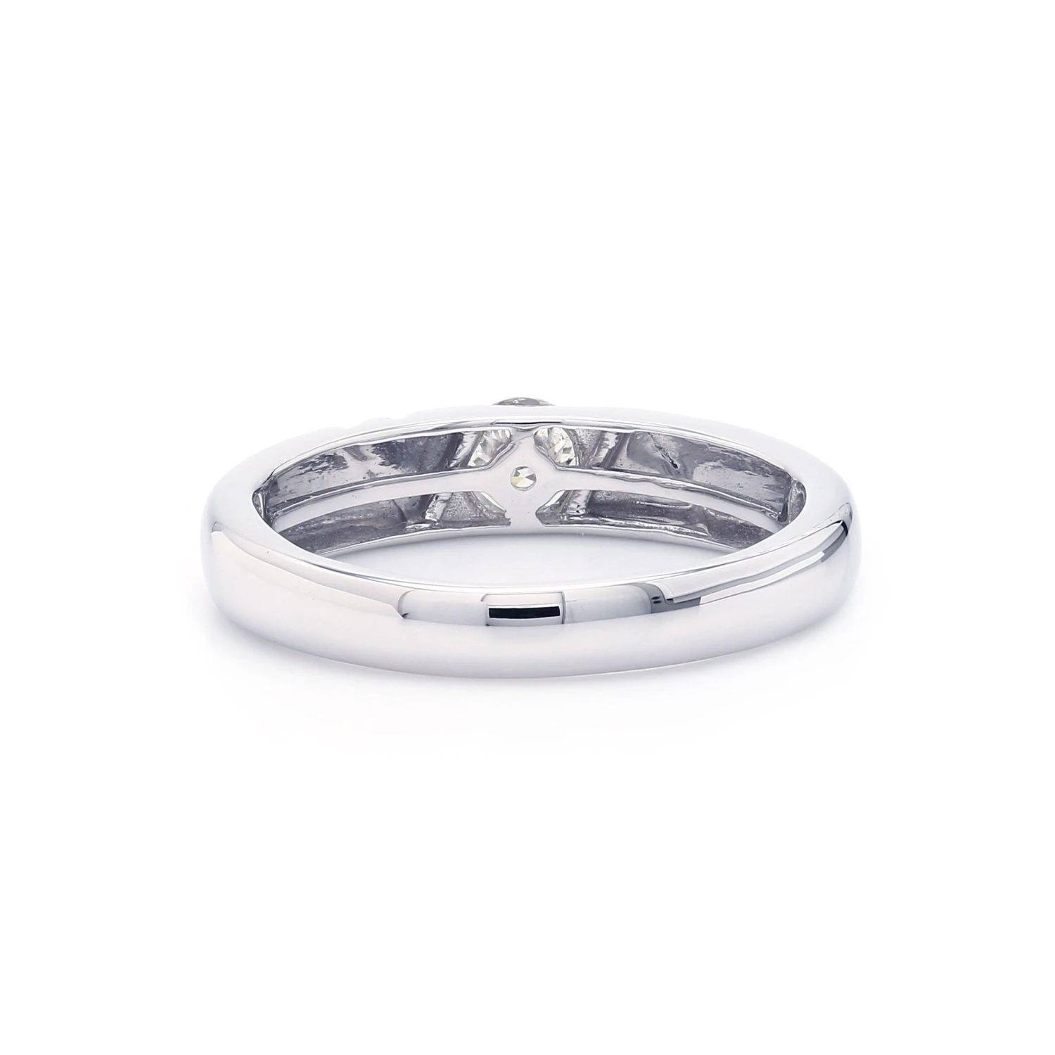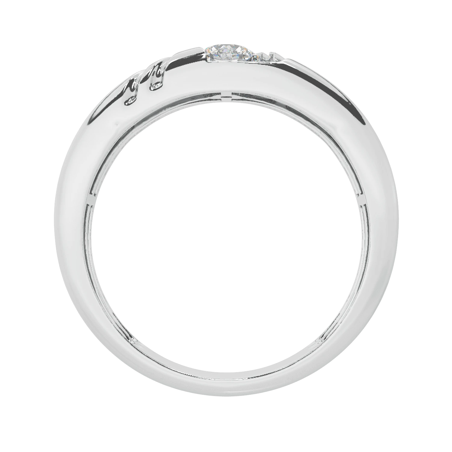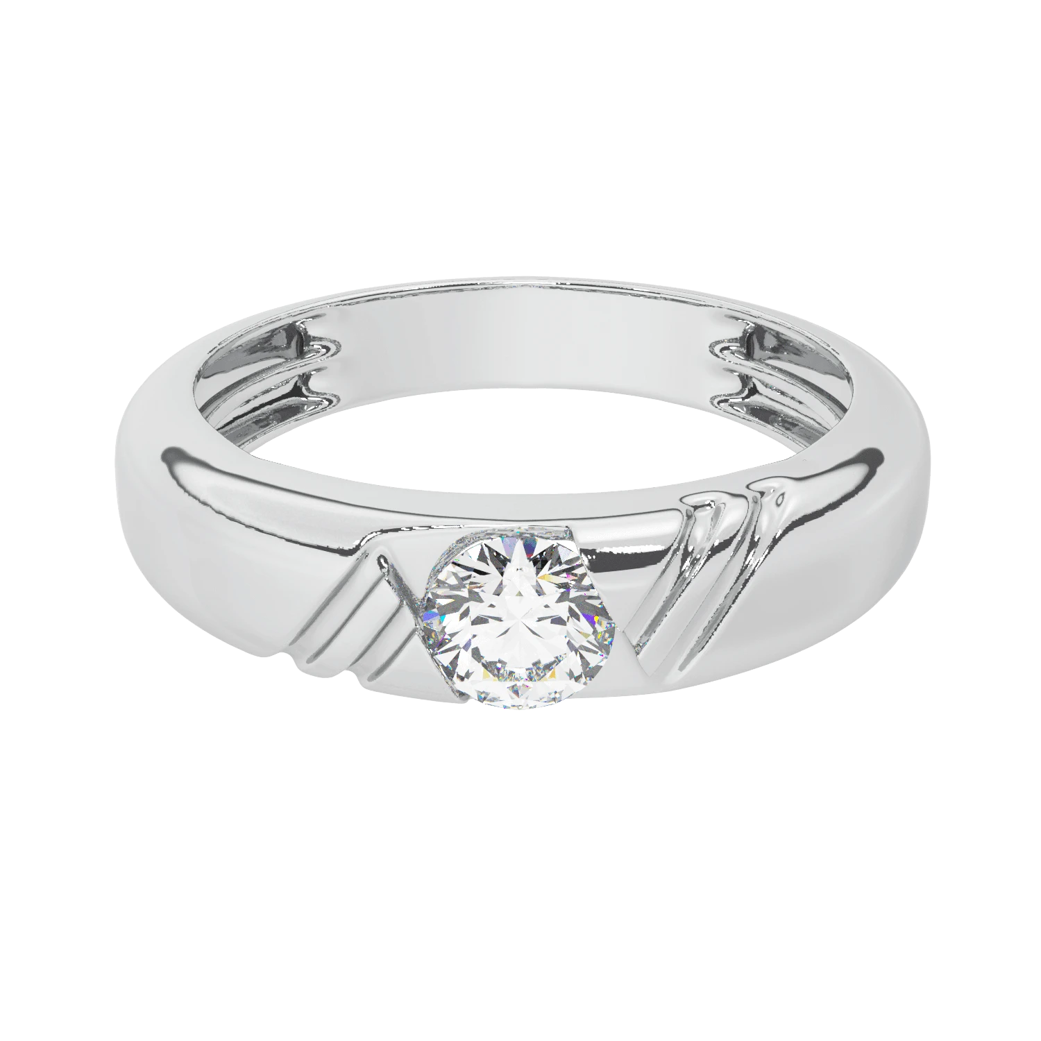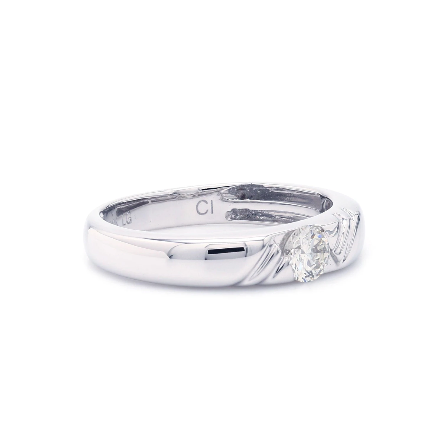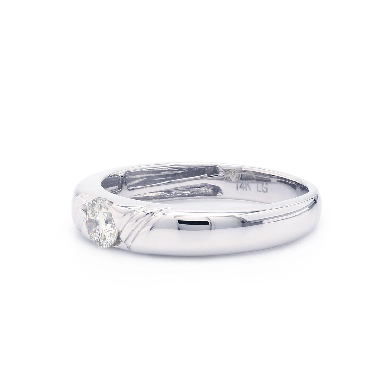 Perfect for a wedding day, anniversary or “just because” solitaire band. A simple look that features a single round lab grown diamond totaling 1/2 carat with I-J color and VS-SI clarity. The half channel set solitaire give it just the right light refraction, while the 2.5mm height* and 4.8mm width* provide a simple comfortable fit.