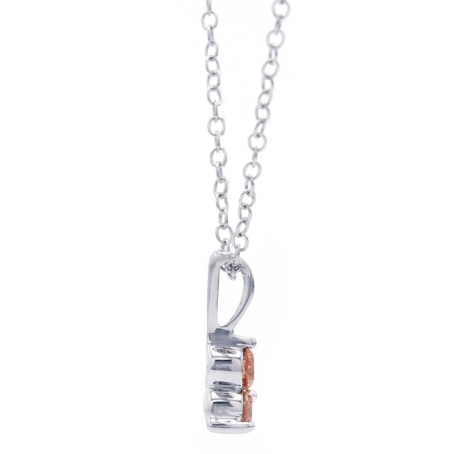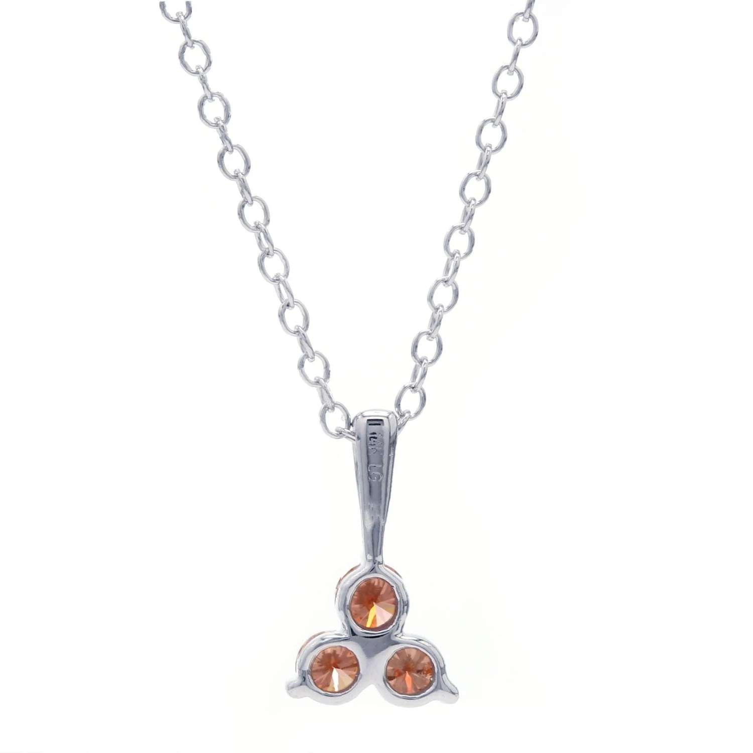 Add dimension to your outfit with the sparkle of this petite lab grown diamond pendant. Crafted in 14K gold and formed into a triangle shape by three orange lab grown brilliant round diamonds. Radiant with 1/4 carat total weight of lab diamonds and a bright polished shine. A stunning accessory that suspends along an 16 inch chain that has a two inch extension for an 18 inch fit. Giving it the a little diversity for occasion worn and secures with a lobster clasp for ease of wear.