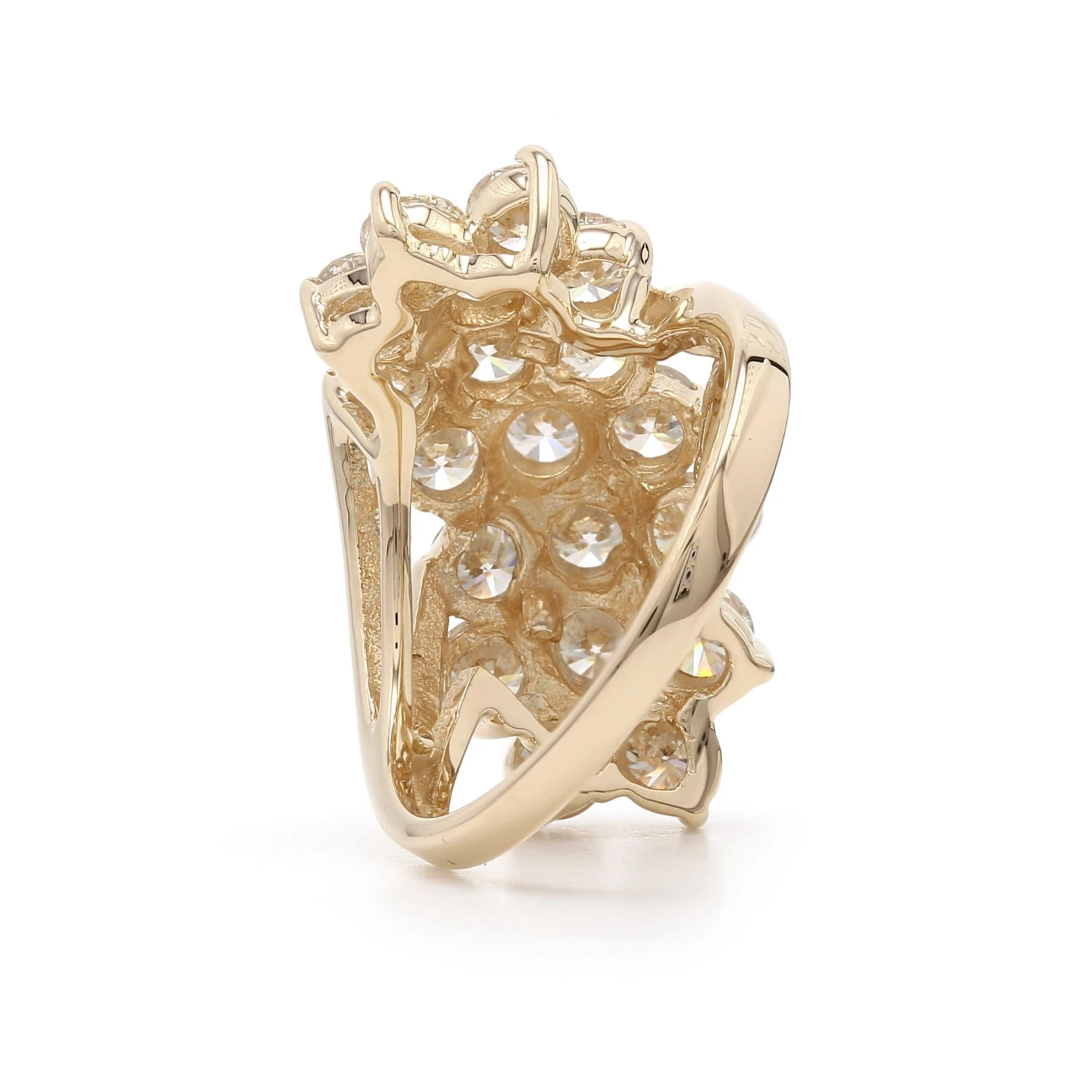 Bring your fun and personality to the forefront with this delightful 3.00 carat total weight lab grown diamond ring. Fashioned in 14K gold, this crossover wave style ring is set with brilliant round lab grown diamonds with I-J color and VS-SI ranking. This magnificent cluster design is sure to be the topic of conversation.