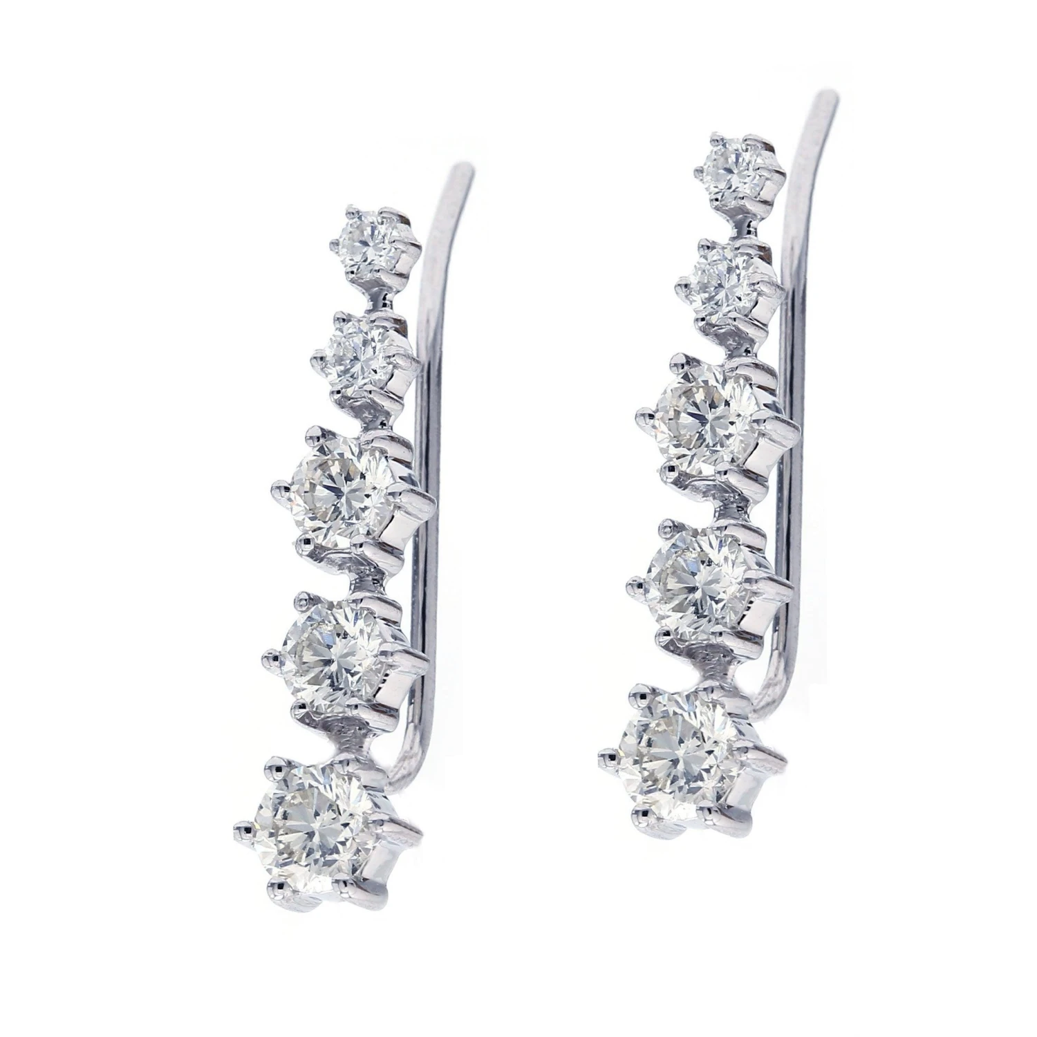Accessorize with a spectacular up-do style with these ultra-glam station ear climbers. Crafted in 14K gold, each earring features lab grown diamonds cascading from large to small as it flows up the ear. Radiant with F-G / VS-SI, 2.00 carat total weight of lab grown diamonds and a bright polished shine, these stellar French wire earrings.