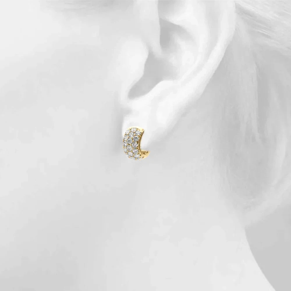 Brighten your day with the Lorie 3 Row Earrings! These charming huggie hoops sparkle with 1 1/2 total carats of lab diamonds. Crafted in your choice of 14 karat gold or sterling silver, they add a playful pop of shine that hugs your ears just right.Â