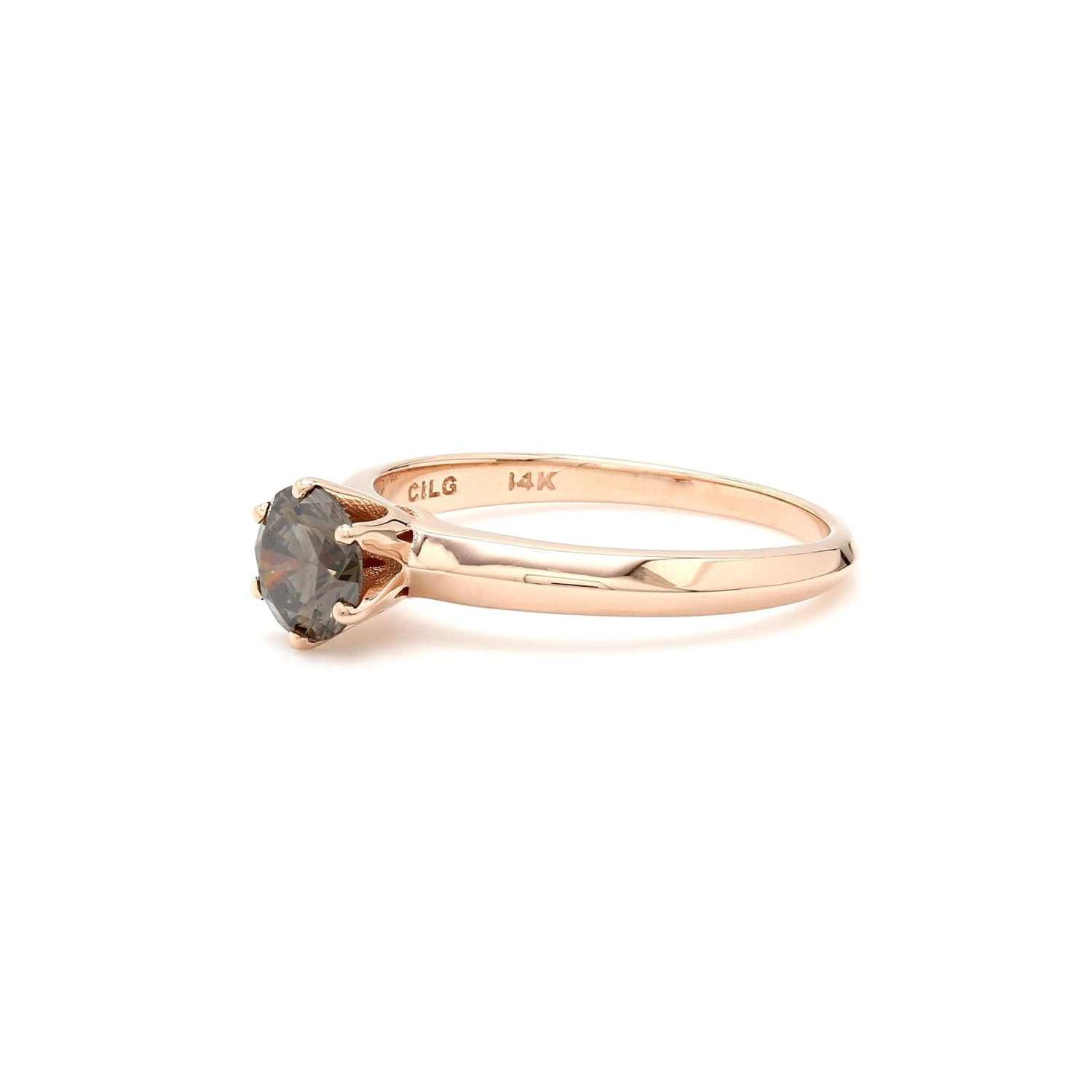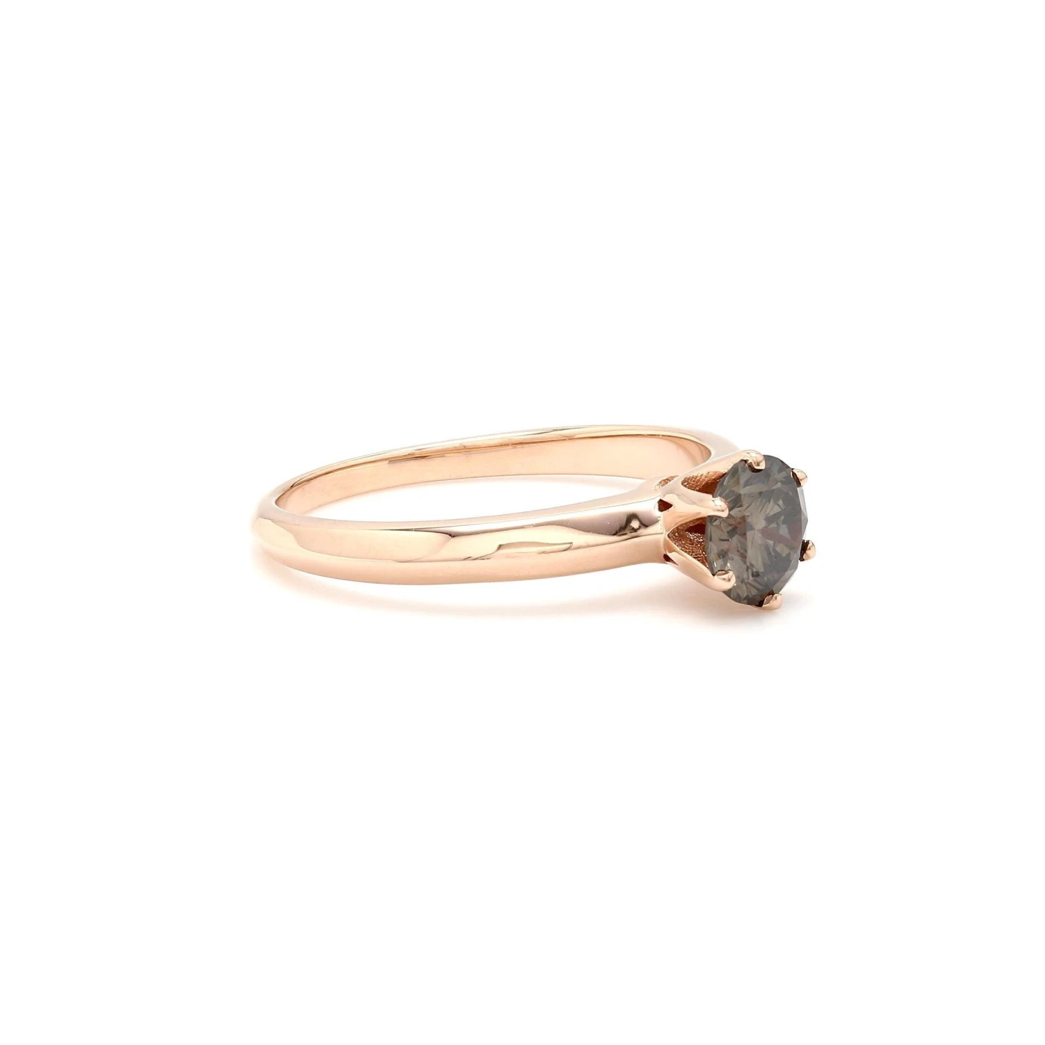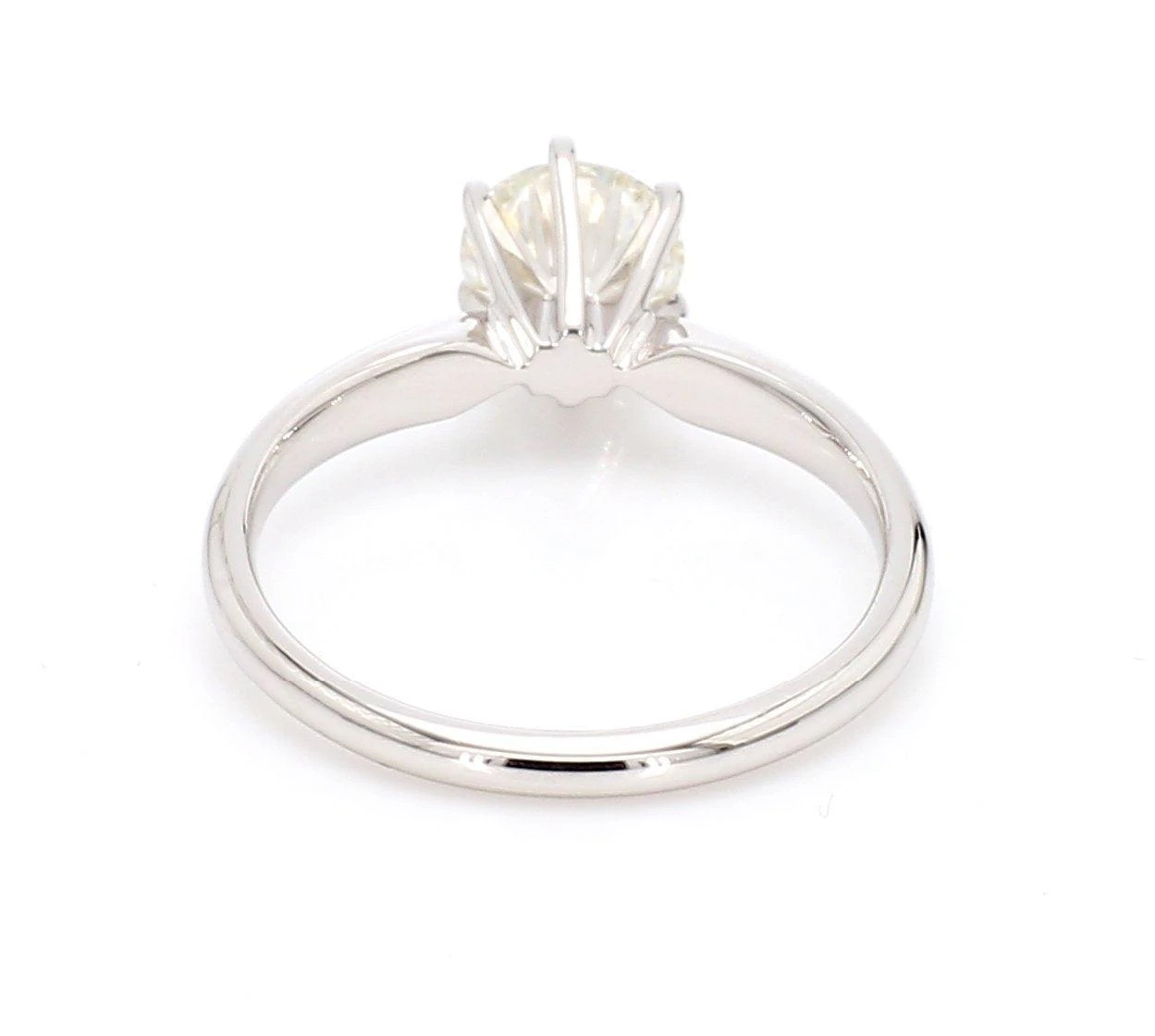 This classic solitaire setting features an impressive six prong mounting in a band of gold with high polish finish.