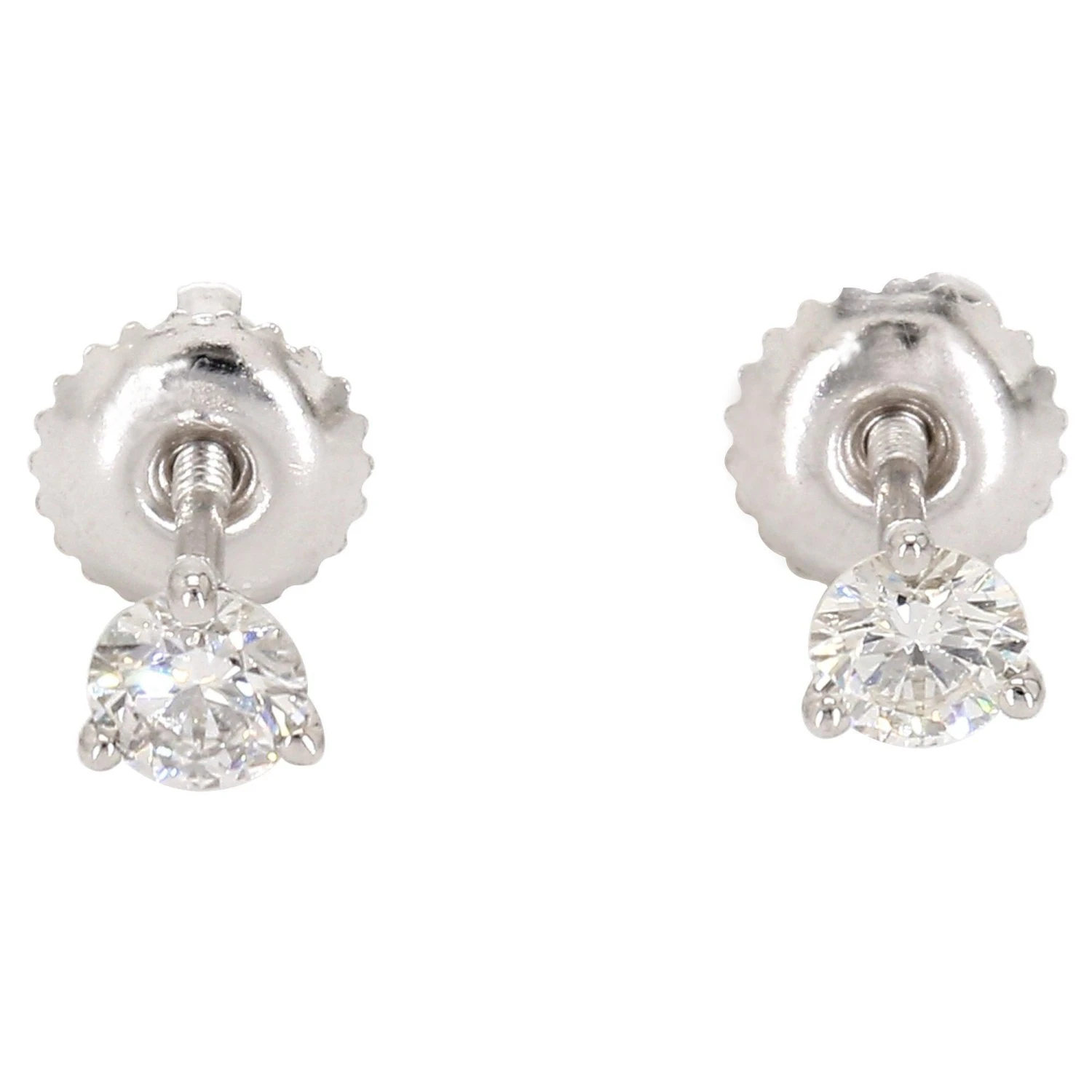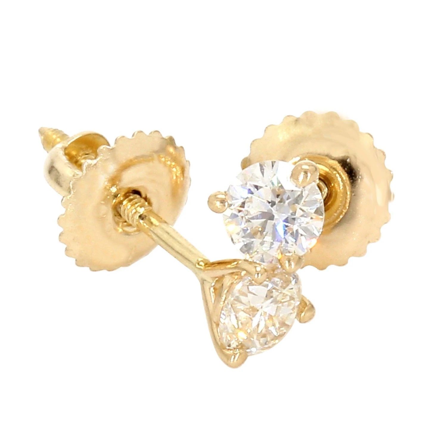 Simple and classic these lab grown diamond solitaire martini style stud earrings, radiate. Perfect for everyday wear, the 3/4 carat total weight brilliant round lab grown diamonds have a I-J color and VS-SI clarity. The solitaires are set in a classic three prong martini glass shaped style 14K white or yellow gold setting with screw back closures. These beautiful earrings can stand alone or have an earring jacket to dress them up, extremely versatile and fit into any wardrobe and complement any occasion.