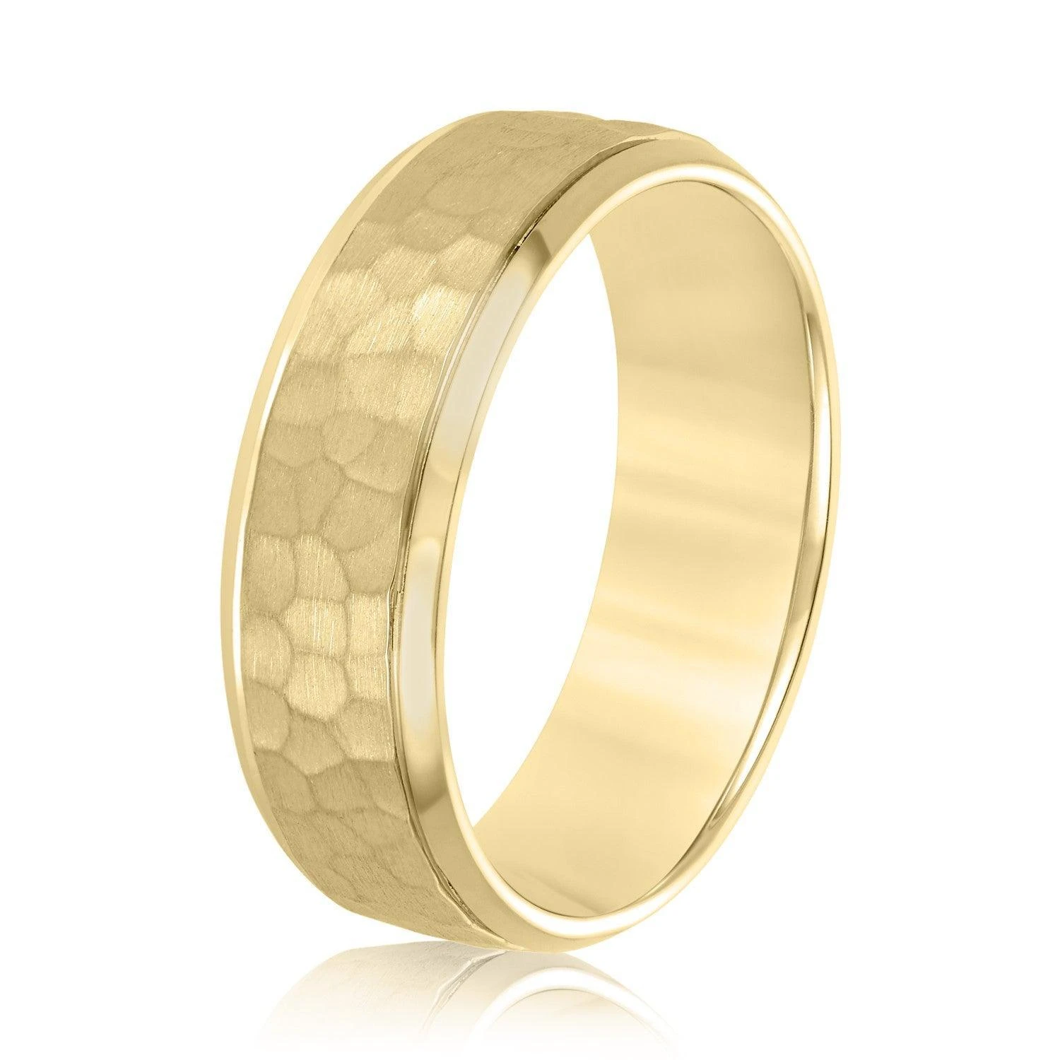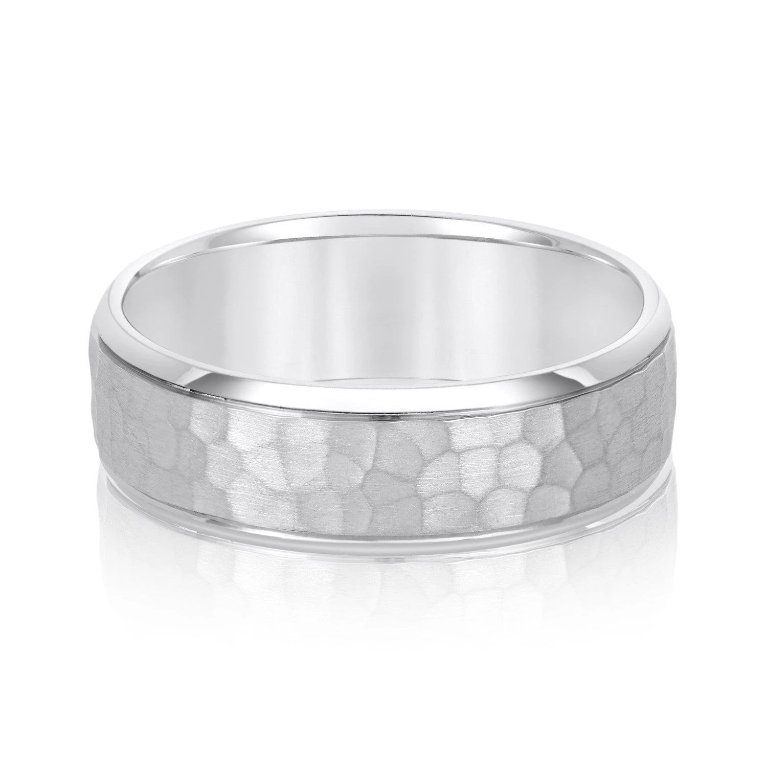 The Nate Wedding Band offers a classic and timeless look with its subtle hammered design. Crafted in either gold or platinum, it is the perfect ring for your special day. Its timeless design ensures it will always remain stylish and fashionable.