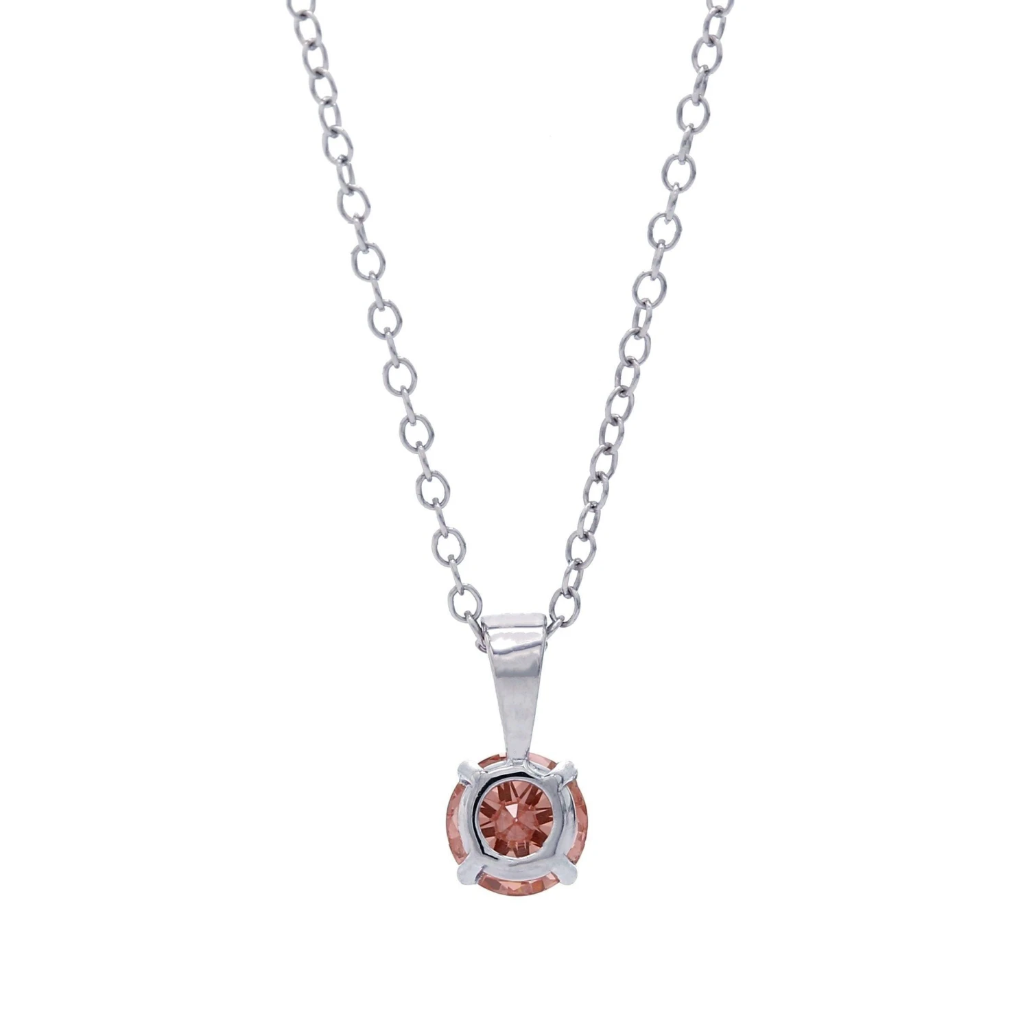 Simple, yet magnificent enough to stand alone, the beauty of a lab grown diamond solitaire needs no accompaniment. This 3/4 carat pink color lab grown diamond pendant in 14k gold glistens. A stunning accessory that suspends along an 16 inch chain that has a two inch extension for a possible 18 inch fit. Giving it the a little diversity for occasion worn and secures with a lobster clasp for ease of wear.