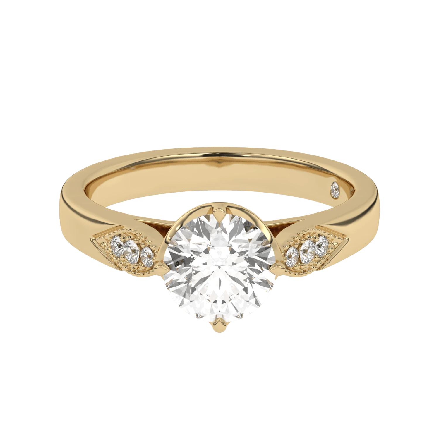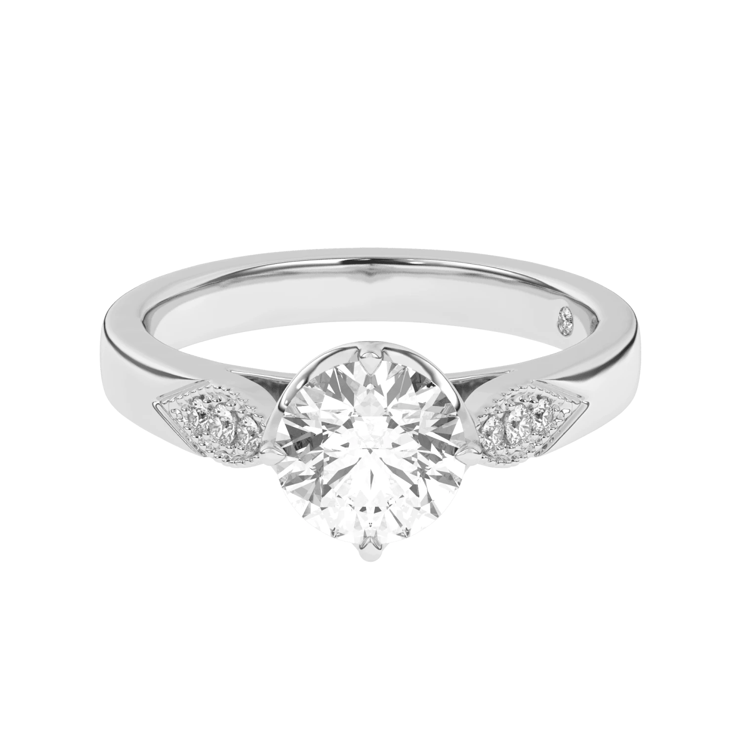 The Phoebe Solitaire Setting is crafted to perfection with lab grown diamond accents totaling 1/12 carats. Its low profile and crown center give it a distinct Victorian look that’s perfect for any engagement. Built to last, this timeless statement piece is sure to make a statement.