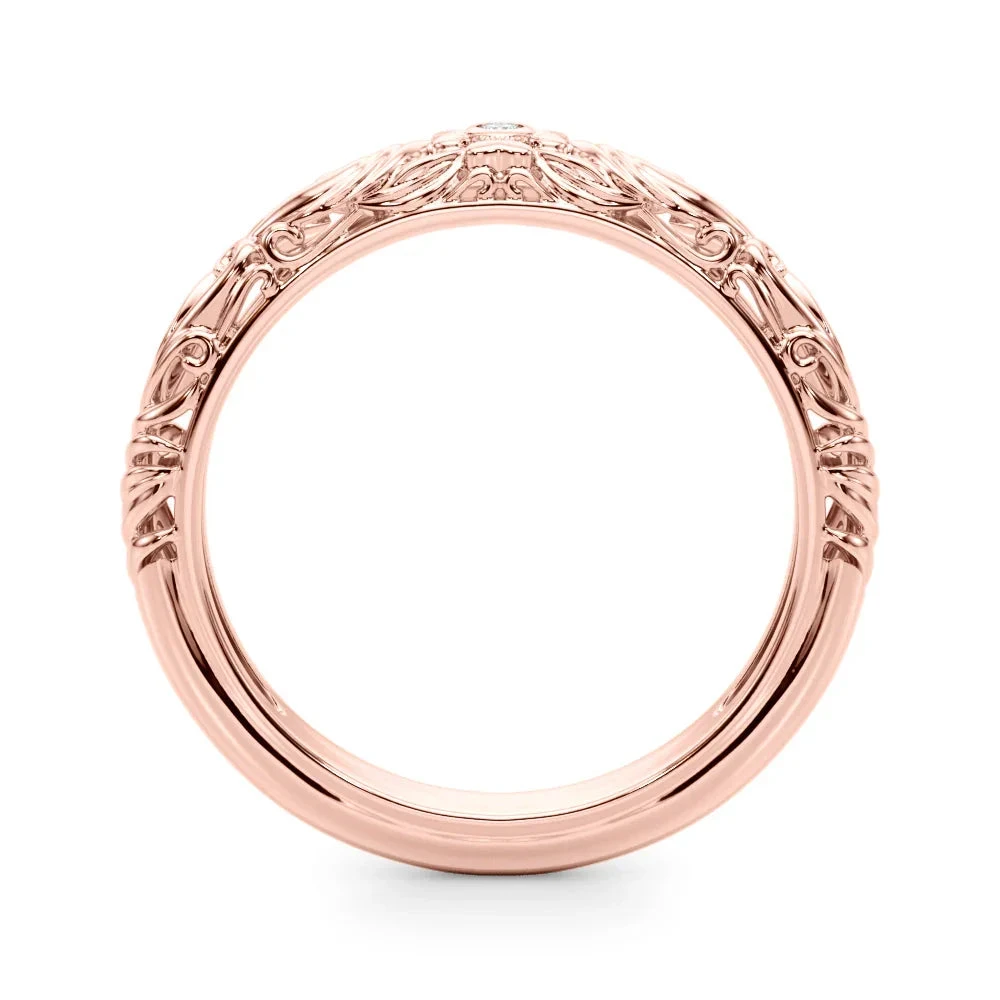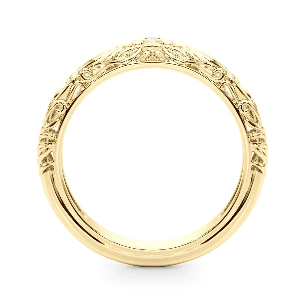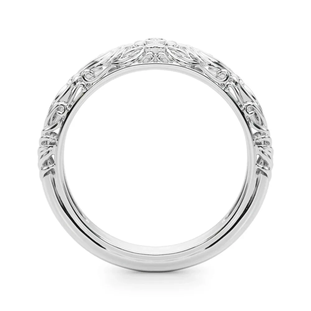 Embrace your inner royal with our Renaissance Band! This playful piece features a dazzling 0.01ct lab grown diamond nestled in a flower center, surrounded by intricate filigree detailing. The band’s Renaissance-inspired design adds a touch of historical charm to your everyday sparkle. Perfect for the modern princess who doesn’t take herself too seriously!