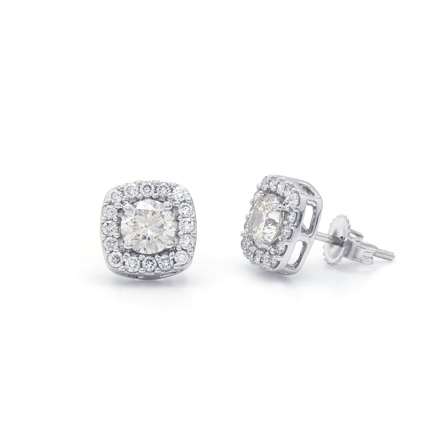 Make a wonderful impression with these beautiful halo stud earrings. Crafted in 14K gold, each breathtaking earring features lustrous I-J, VS-SI center lab grown diamond for a 0.70 carat total weight combined, wrapped in a frame of shimmering petite lab-created diamonds with a total weight of 0.30 carats. Polished to a bright shine, these post earrings secure comfortably with friction backs.