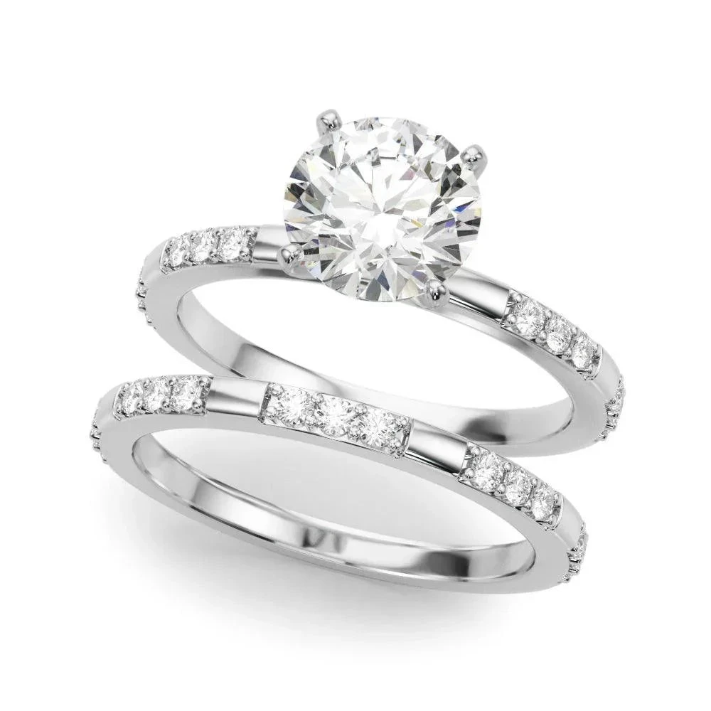 Complete your special day with our Station 3 Stone Bridal Set. Featuring a brilliant 1.0ct round lab grown diamond center and two 3 stone stations totaling 1/5ctw, this set exudes elegance and sophistication. The matching 1/4ctw wedding band completes the look, making this the perfect choice for your forever love.