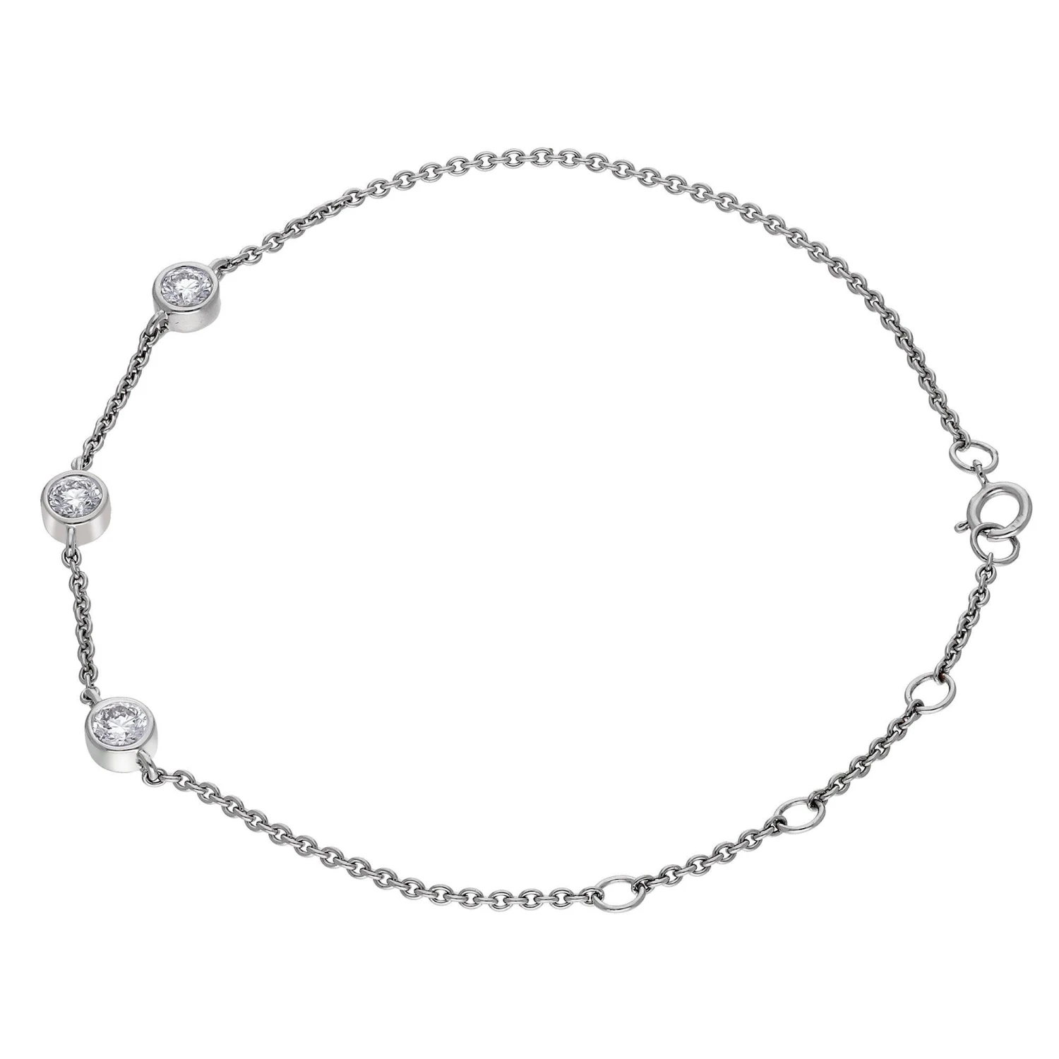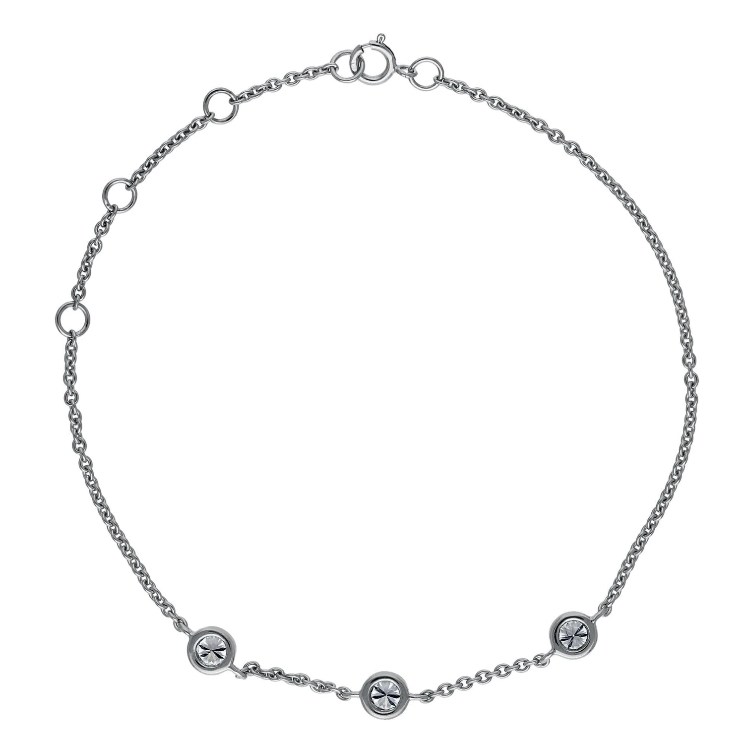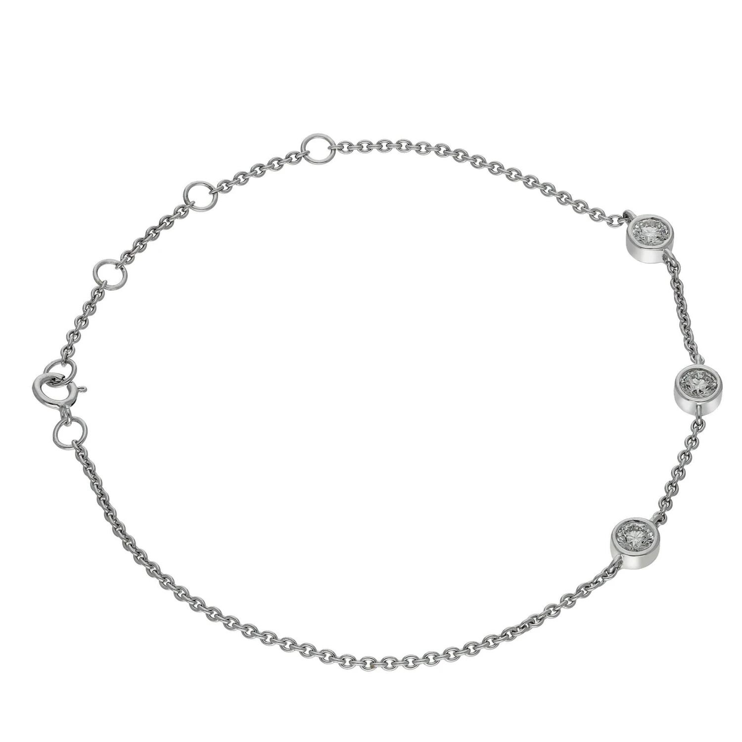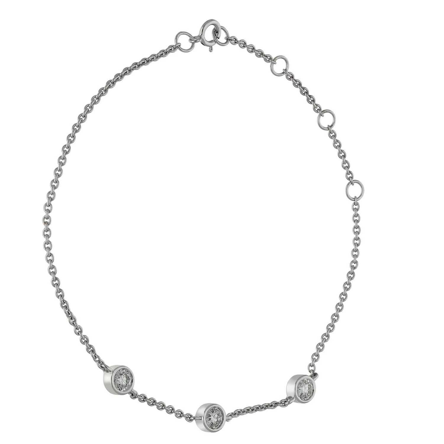 The adjustable and timeless beauty of the Tisha 3-Stone Bracelet! Crafted with lab-grown round diamonds of G-H VS-SI quality, bezel set and held securely in place with a spring-ring clasp, this bracelet adds an exquisite sparkle to whatever you wear. Starting with a hoop at 6 inches and adding a hoop at 1/2inch stations gives the adjustability for style and perfect fit. Delicate and elegant, it’s sure to make you feel beautiful inside and out.Â
