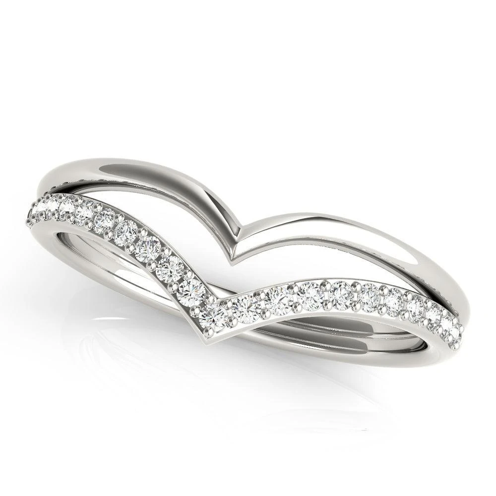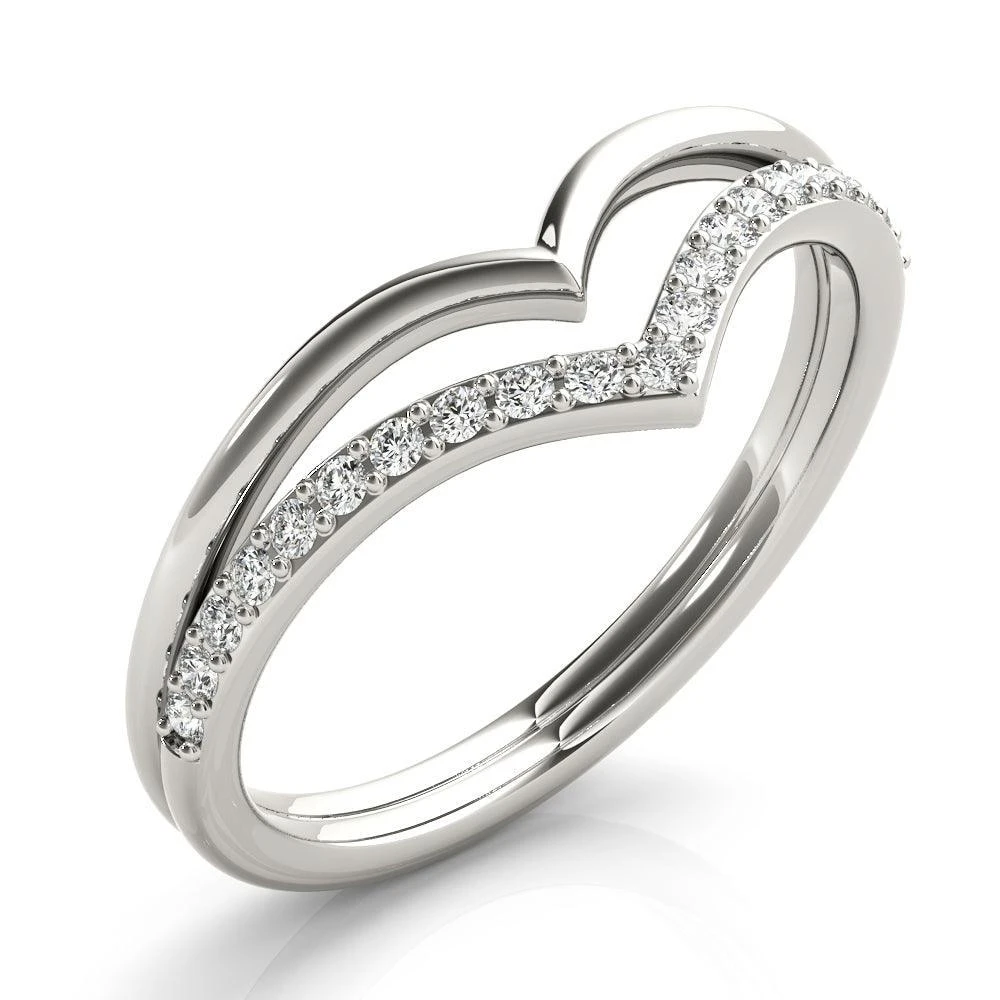 Double your fashionable fun with Vanessa’s Chevron Duo Band! With one chic chevron high polished band and one diamond-lined for double the look, you’ll be rocking 1/6ctw lab grown diamonds every single day. Show off your style by stacking it or adding it as a wedding band to your engagement ring, the possibilities are endless.Â