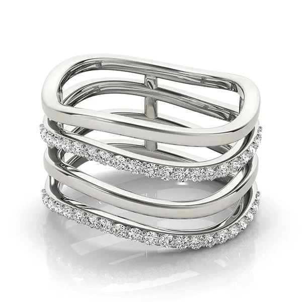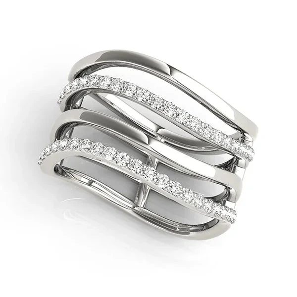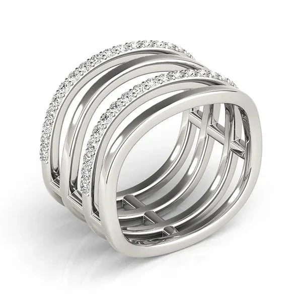 Shine bright with our fabulous, show-stopping ring that features a bold, wide band with four stylish open bars. Two rows adorned with a dazzling 3/8 carat total weight of lab grown diamonds. It’s not just a fashion band—it’s a conversation starter! This fun and eco-conscious design adds just the right amount of sparkle to your everyday look. Who needs a reason to treat yourself to some sustainable bling?